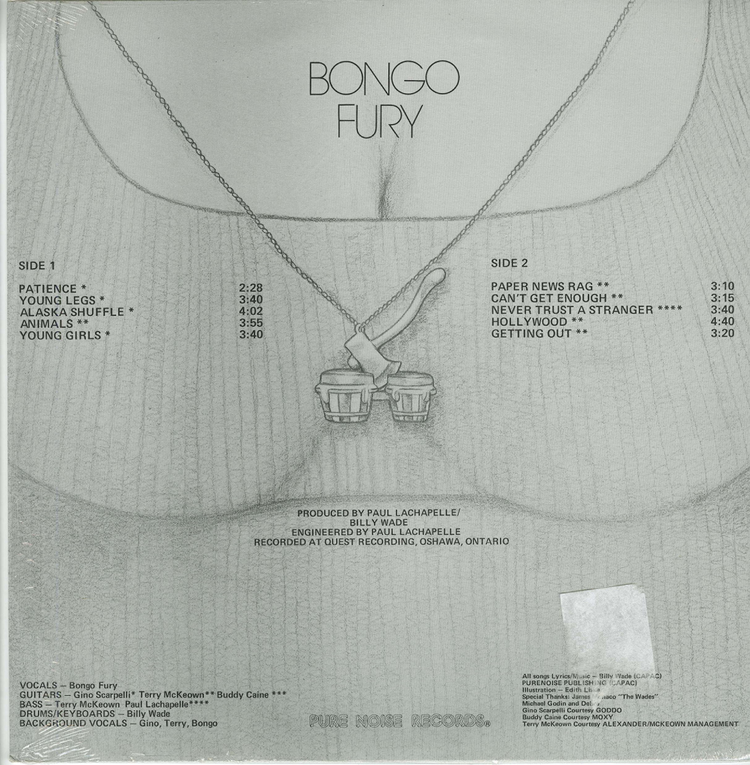 "Young Legs" is a cover of the Moxy song released two years earlier on their "Ridin' High" album. Bongo Fury's song "Alaska Shuffle" was also featured on the compilation "Toronto Calling", released on El Mocambo in 1981.