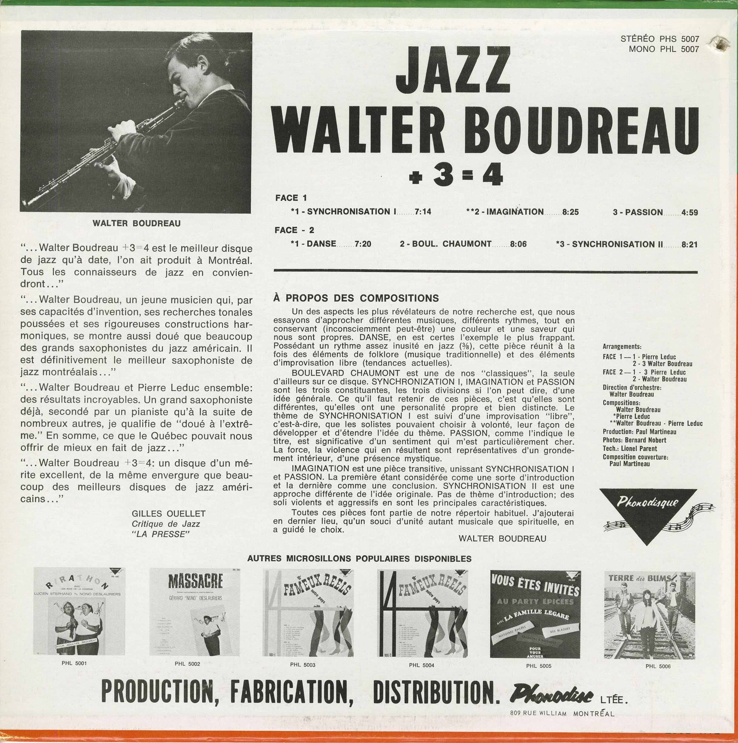 He became conductor of his own jazz quartet in 1965. In 1968, together with the poet Raoul Duguay, he founded the ensemble l’Infonie, which performed unique pieces combining elements of contemporary music, happenings, jazz, and multimedia. The ensemble disbanded in 1973, after giving more than 200 concerts.