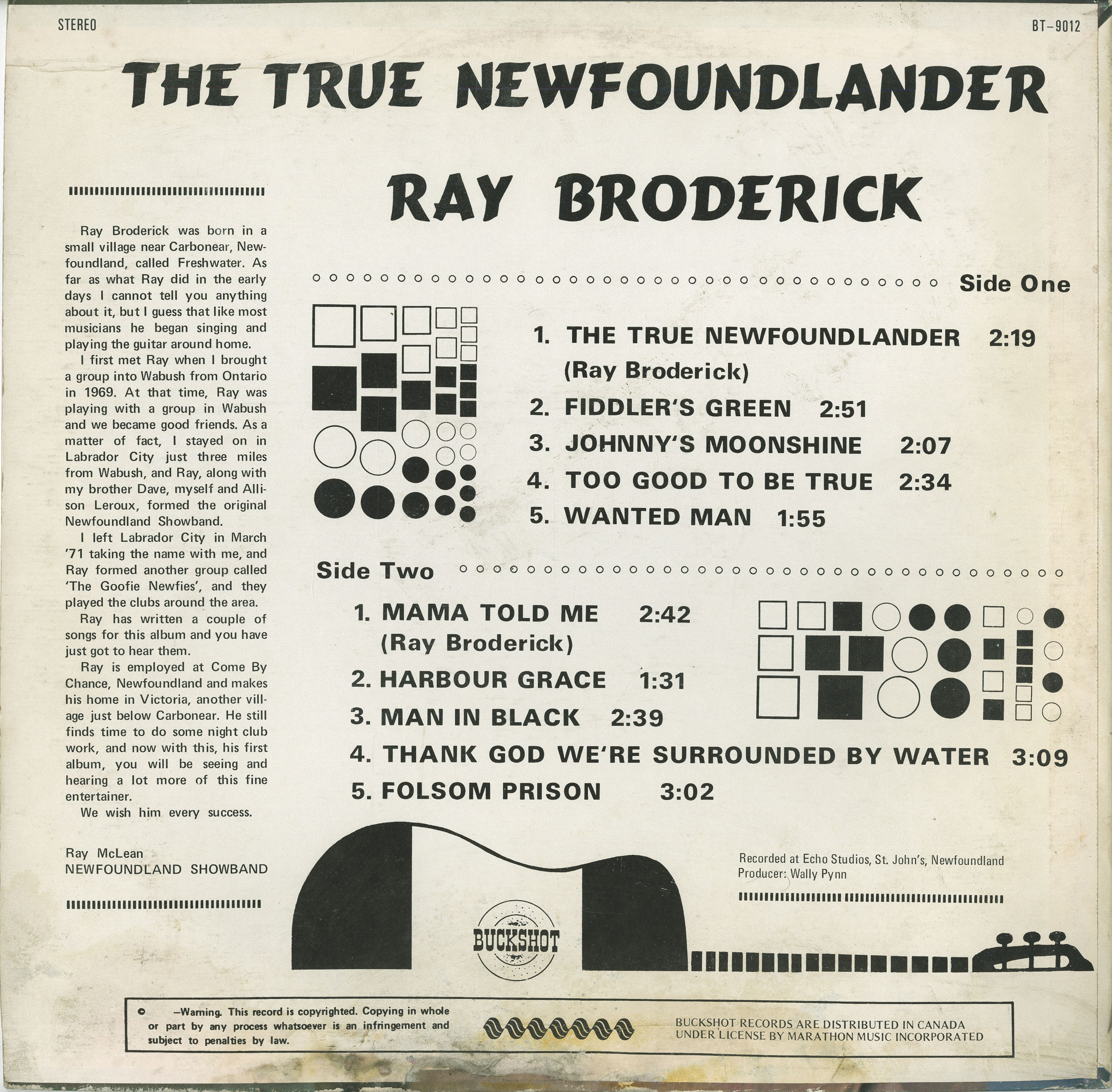 Ray is employed at Come By Chance, Newfoundland and he visits his home in Victoria, another village just below Carbonear. He still sings, and will go with his first love, and to show this, his first album. We would suggest hearing a lot more of this fine entertainer.