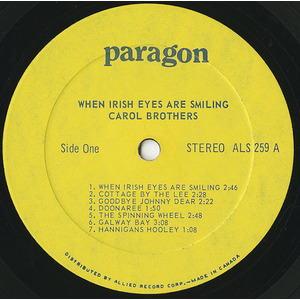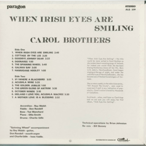 "When Irish Eyes Are Smiling" - No title could be more suited to Carol Brothers as she renders heart-warming songs of Ireland, for indeed one would think she has been kissing the blarney-stone all her life. Born in St. John's, Newfoundland, Carol began singing at the age of eight, and under the watchful eyes of Newfoundlanders, she has become one of the best loved singers of Canada.