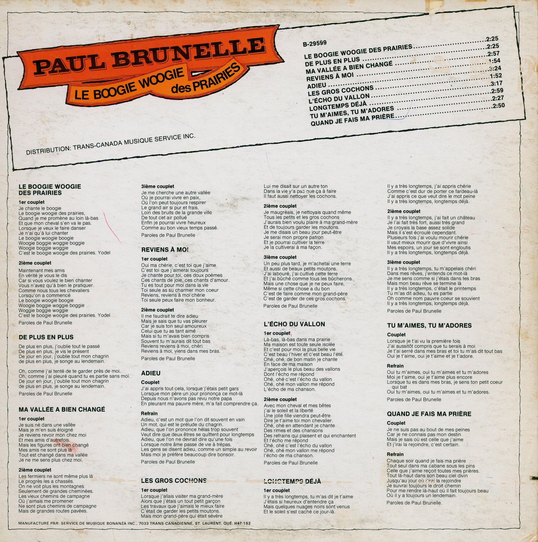 Le Boogie Woogie des Prairies Face B
