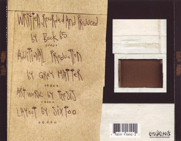 Originally released in a 1000 copies only pressing on Endemik records, the pressing consisted of one approximately 30 something minute track. This track was made up of numerous individual songs that mixed together akin to Buck 65's earlier album styles. Apparently the pressing was meant to have additional track markers but it came out on one large track by mistake. The whole recording was composed and completed over one weekend before Buck went on tour, though the lyrics may have been written over a period of time.