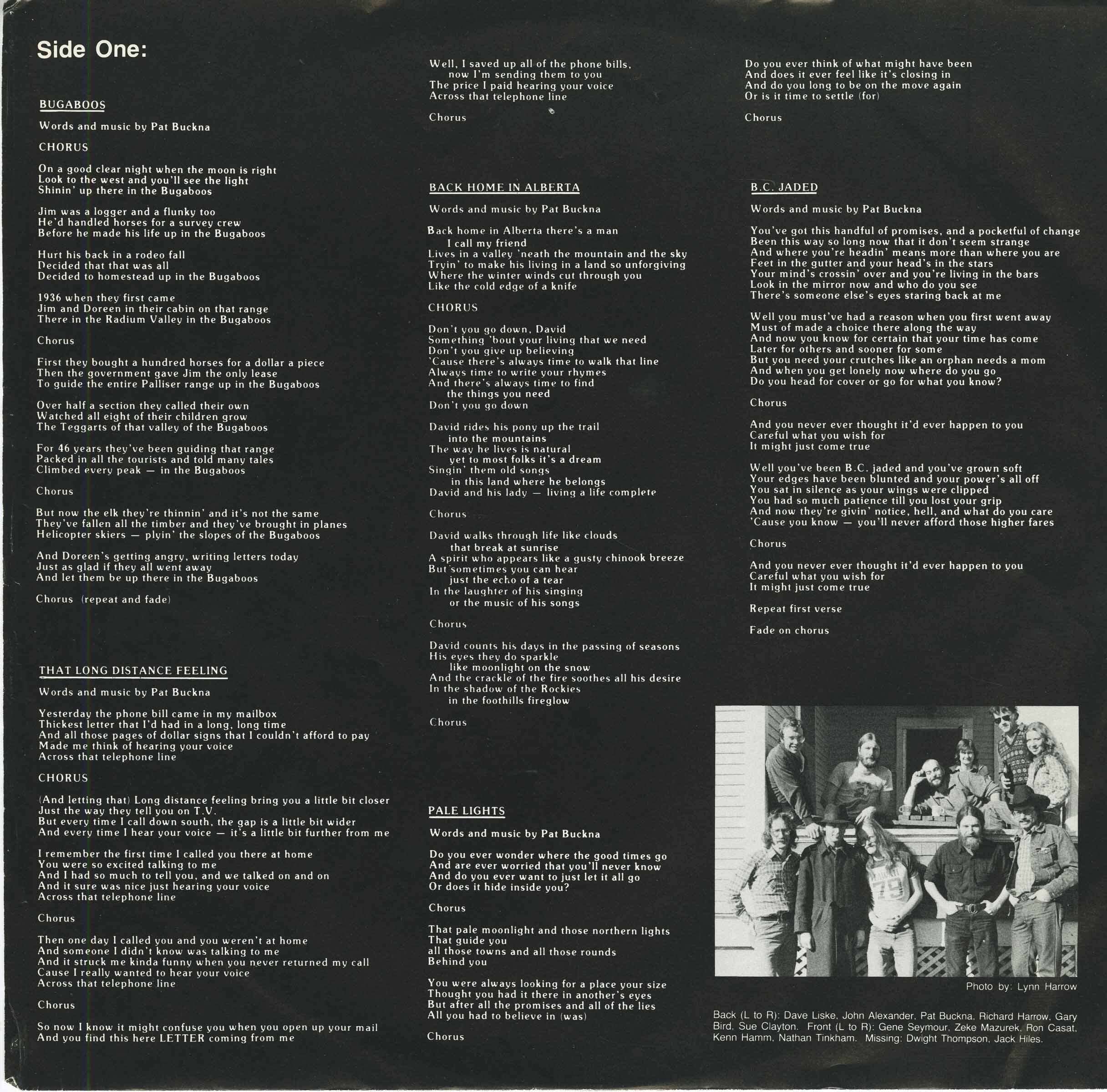 Pat Buckna: lead vocals & acoustic guitar