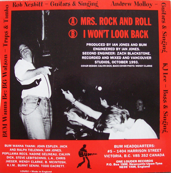 Bum’s debut full-length album, Wanna Smash Sensation! (Munster Records, 1993), brought together singles, new material, and extended experiments such as the side-long track ‘No Idea’. Recorded primarily at Egg Studio in Seattle and produced by Bloch, the album showcased the group’s range—from concise power-pop blasts to looser, jam-oriented structures—and has since become a cult favourite among collectors of Canadian punk and pop-punk records. The album’s combination of immediacy, charm, and unpolished energy has helped it endure well beyond the band’s original lifespan.