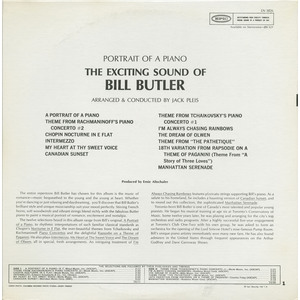 By the 1970s, Butler was a fixture in Toronto’s high-end music scene, appearing regularly in clubs, concert venues, and on television. His albums — whether solo, orchestral, or trio-based — remain a document of a Canadian artist who bridged jazz, pop, and light classical traditions. From his teenage trio beginnings to his long residencies and national broadcasts, Butler left an enduring mark on Canadian easy listening and lounge music.