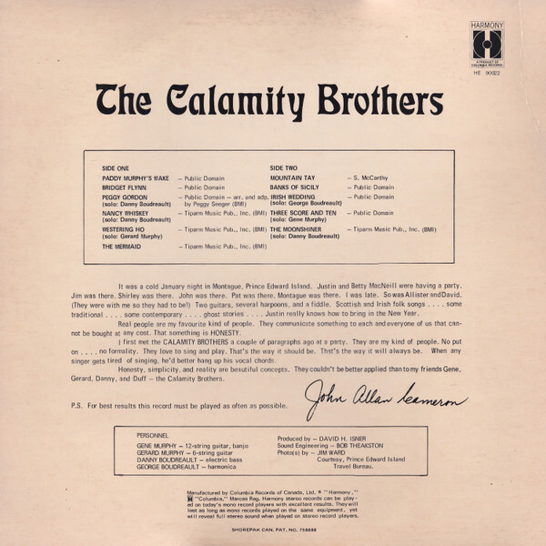 I first met the CALAMITY BROTHERS a couple of paragraphs ago at a party. They are my kind of people. No put on.... no formality. That's the way it should be. That's the way it will always be. When any singer gets tired of singing, he'd better hang up his vocal chords.