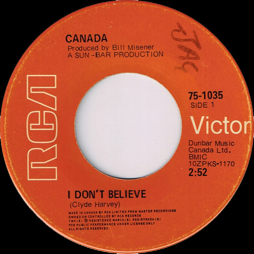 Canada signed on to RCA Records and started working with producer Bill Misener, a talented singer, songwriter and producer who is weirdly best remembered as the voice of Folgers Coffee from 1985 to 1998. They issued 'I Don't Believe' in 1970, and though the funky sing-along failed to find much traction on the charts, it did manage to score a bit of ink in the August 8, 1970 edition of Cash Box. To wit: "On the domestic front RCA has just released a couple of Bill Misener productions that could shake the recording scene. The disk having the most potential would appear to be 'I Don't Believe' by Vancouver's Canada. The plug side was written by group organist Clyde Harvey. Formerly Fox, this group have found an eager following throughout Upper Canada and are currently on a tour of the western provinces. The disc has already been picked up by radio stations in the areas in which they are known."
