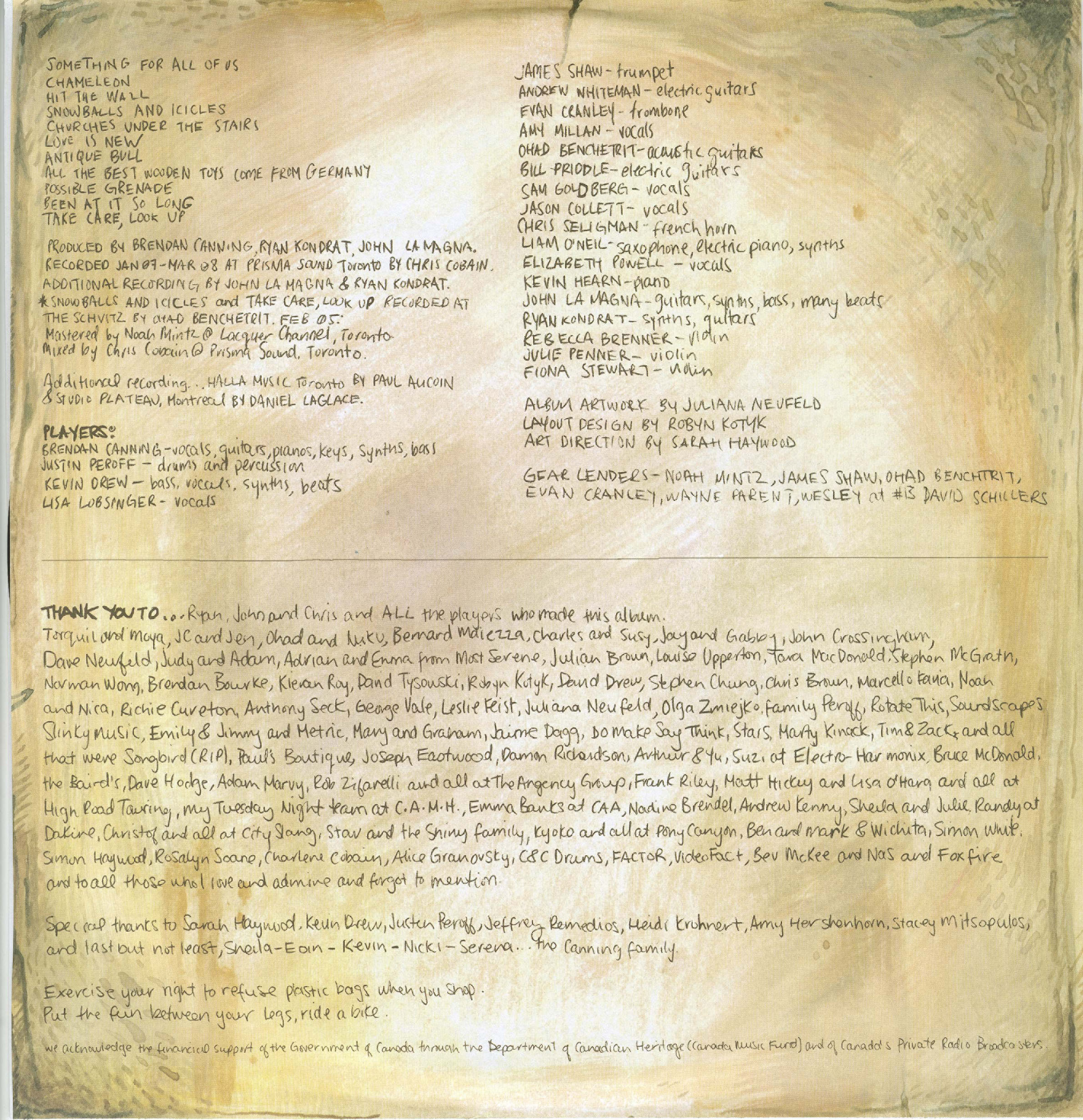 Ironically titled Something For All Of Us, Canning's solo debut was the first time the furry-faced Broken Social Scenester stepped up to the plate after playing second fiddle to frontmen like Kevin Drew and Jose Contreras for so many years. And what do you know? He had it in him all along to make a kick-ass album of his own. And what a kick ass album! Beautifully alternating between the ambient music of Canning's DJ work and KC Accidental and the noisy indie rock BSS squeezed out of influences like Sonic Youth and Dinosaur Jr., it really was something great. "Churches Under Stairs" is where it's at, but I've heard "Love Is Knew" is hilarious live.