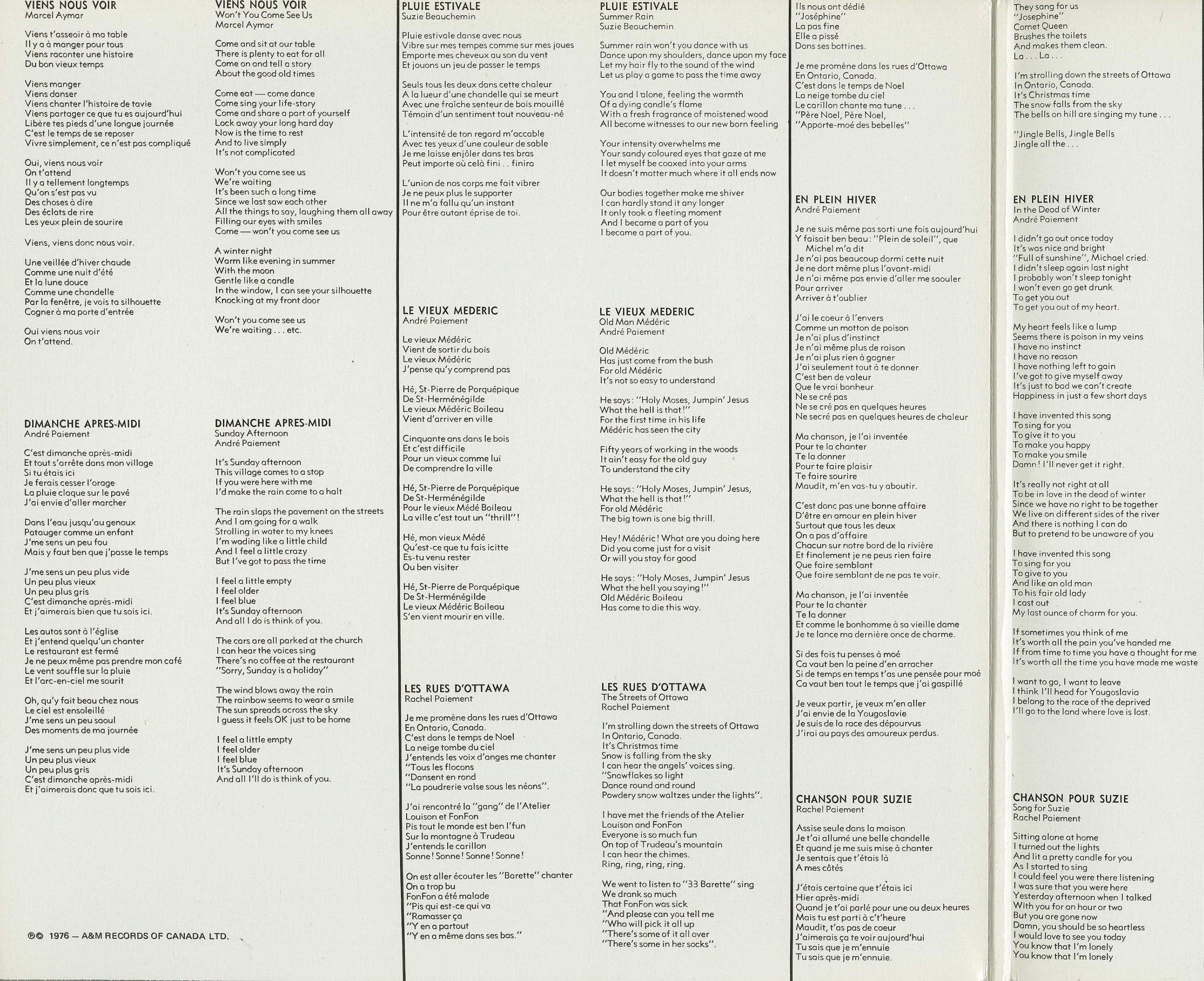 Recorded at Studio Son Quebec from August 2 to 21, 1976