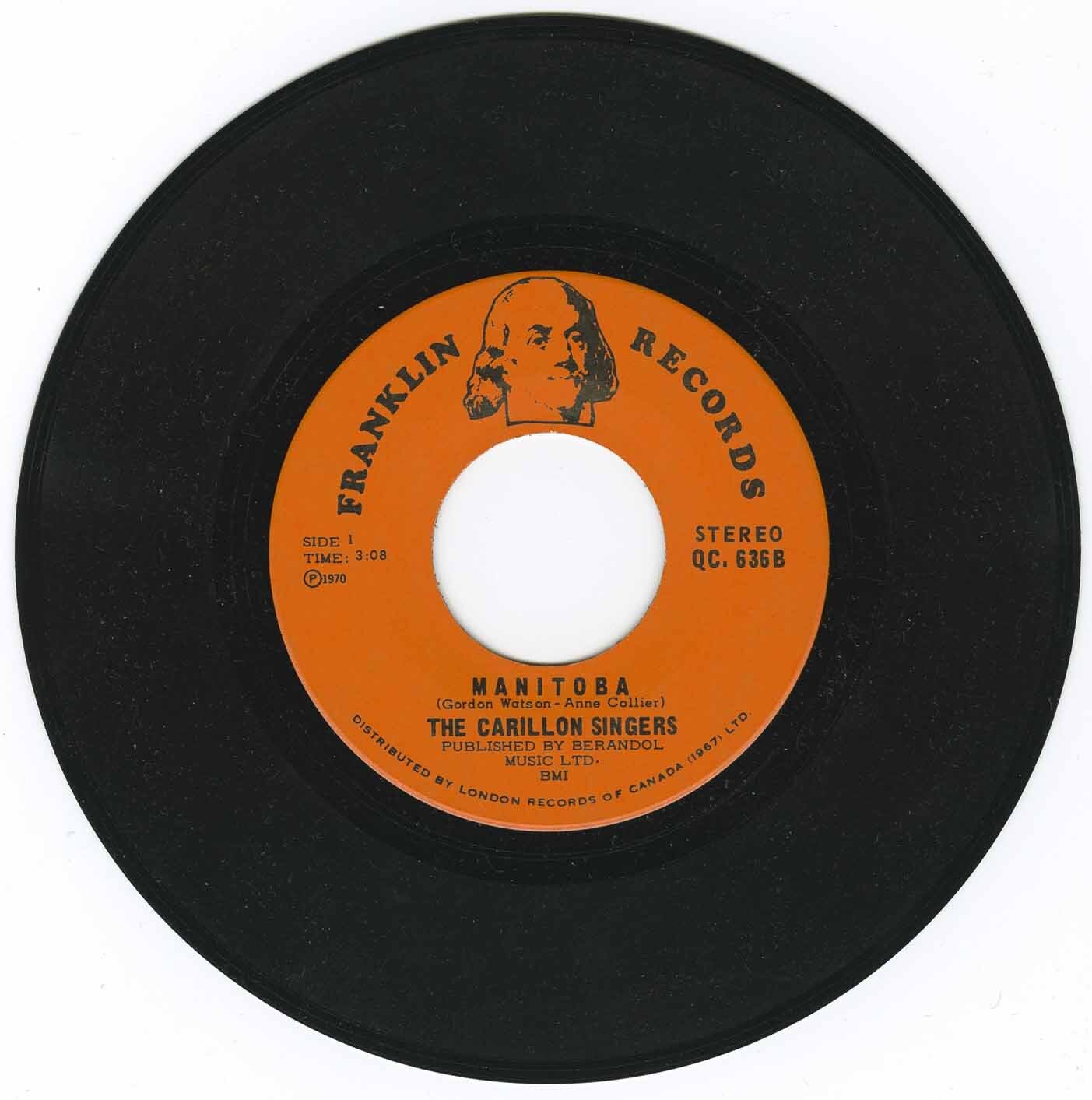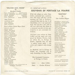 Manitoba civic pride (The Spirit Of ’70) 7” picture sleeve. “An original and exclusive souvenir of Portage La Prairie. With this album we salute Manitoba’s centennial into confederation…” Lovely artifact.