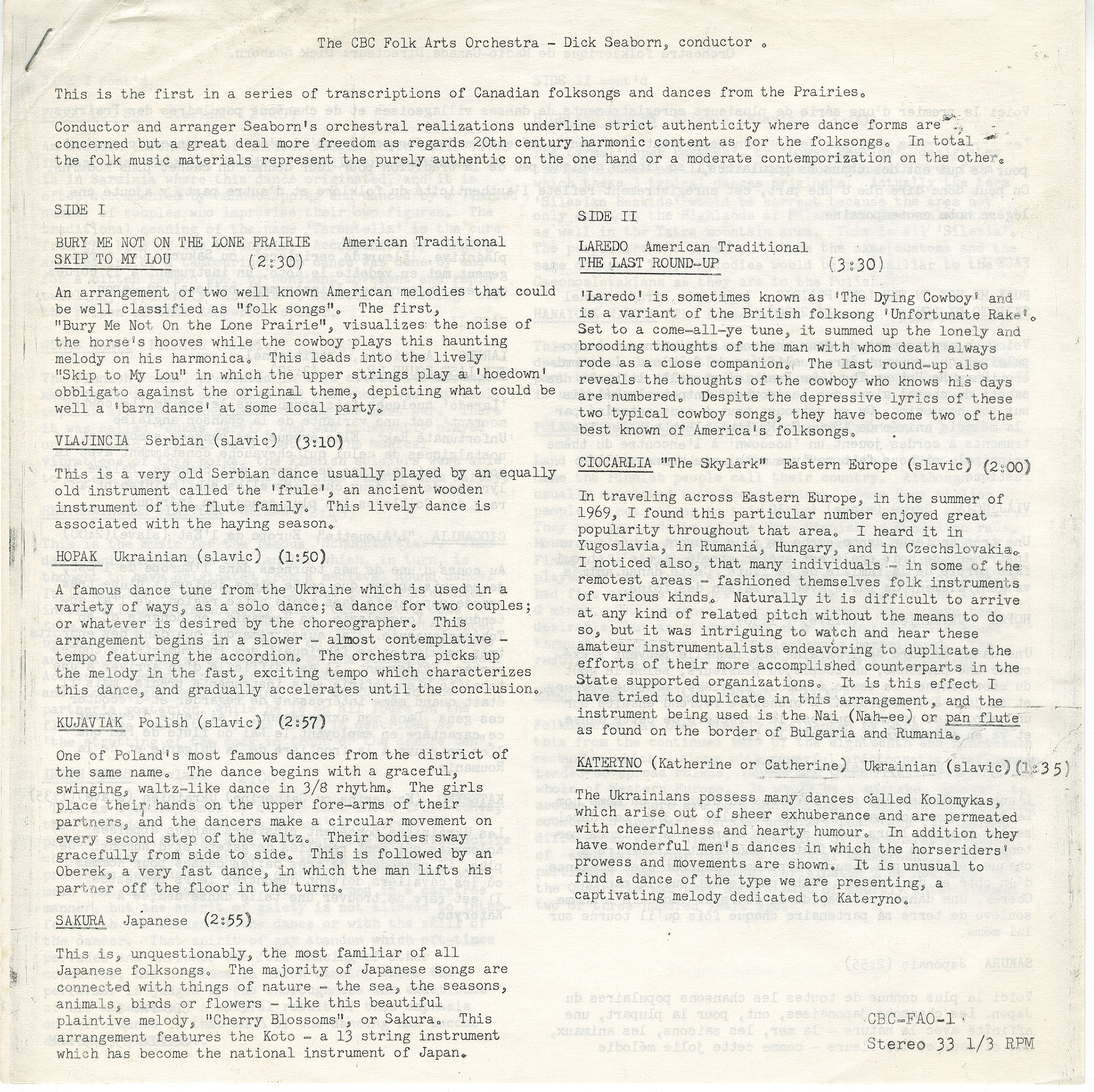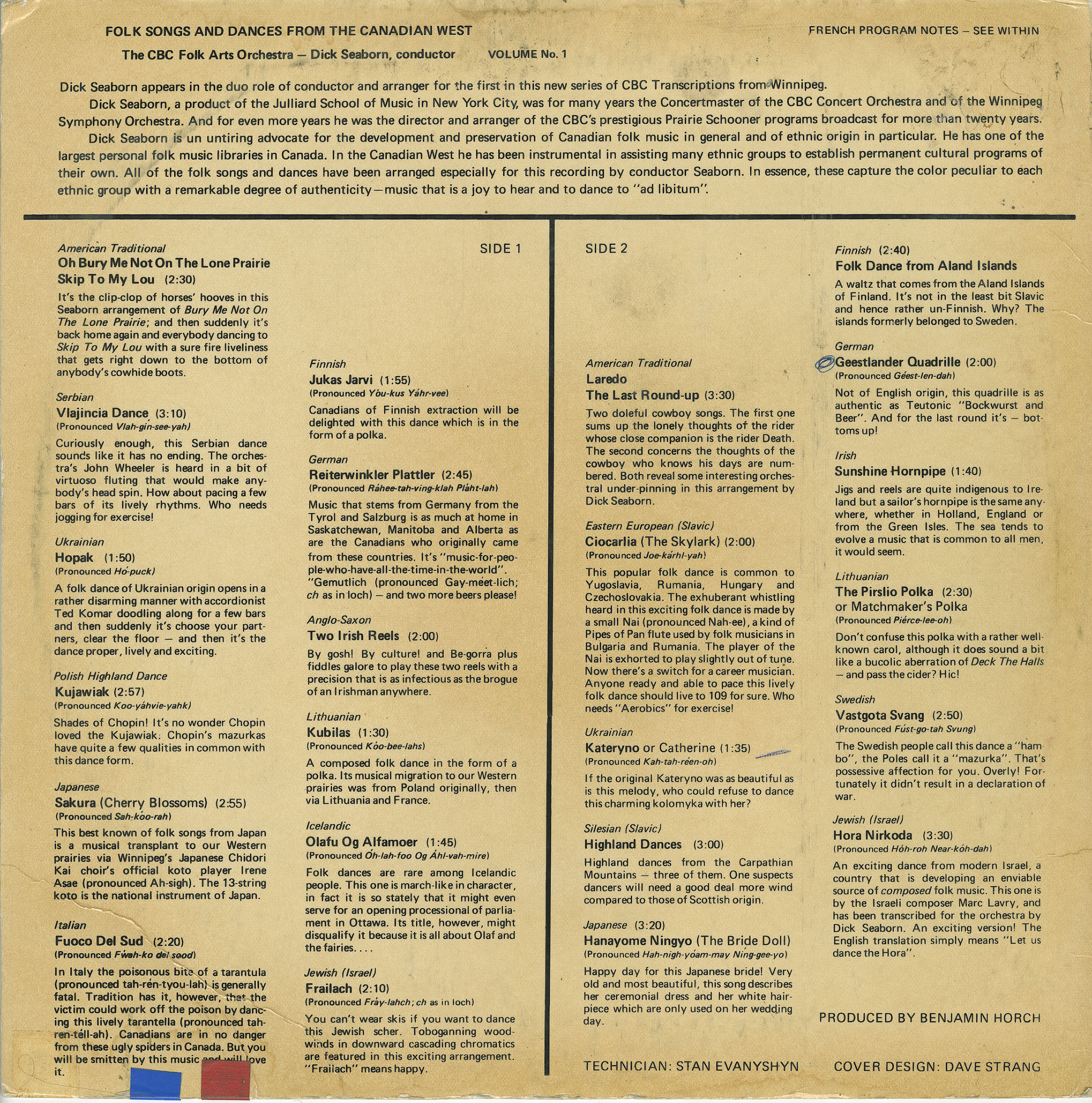 Born at Winnipeg on 25 April 1911, son of Ernest Frederick Seaborn and Alica Rose Crudge, he was educated at the University of Alberta and Julliard School of Music (New York). He spent three years in a seminary with the intention of becoming a minister. Instead, he worked as Musical Director at CJAY Television and was Concertmaster and Assistant Conductor of the Winnipeg Symphony for twelve years. In the 1960s, he was director of the Sokol Polish Folk Ensemble and is credited with taking it to “the next level”.