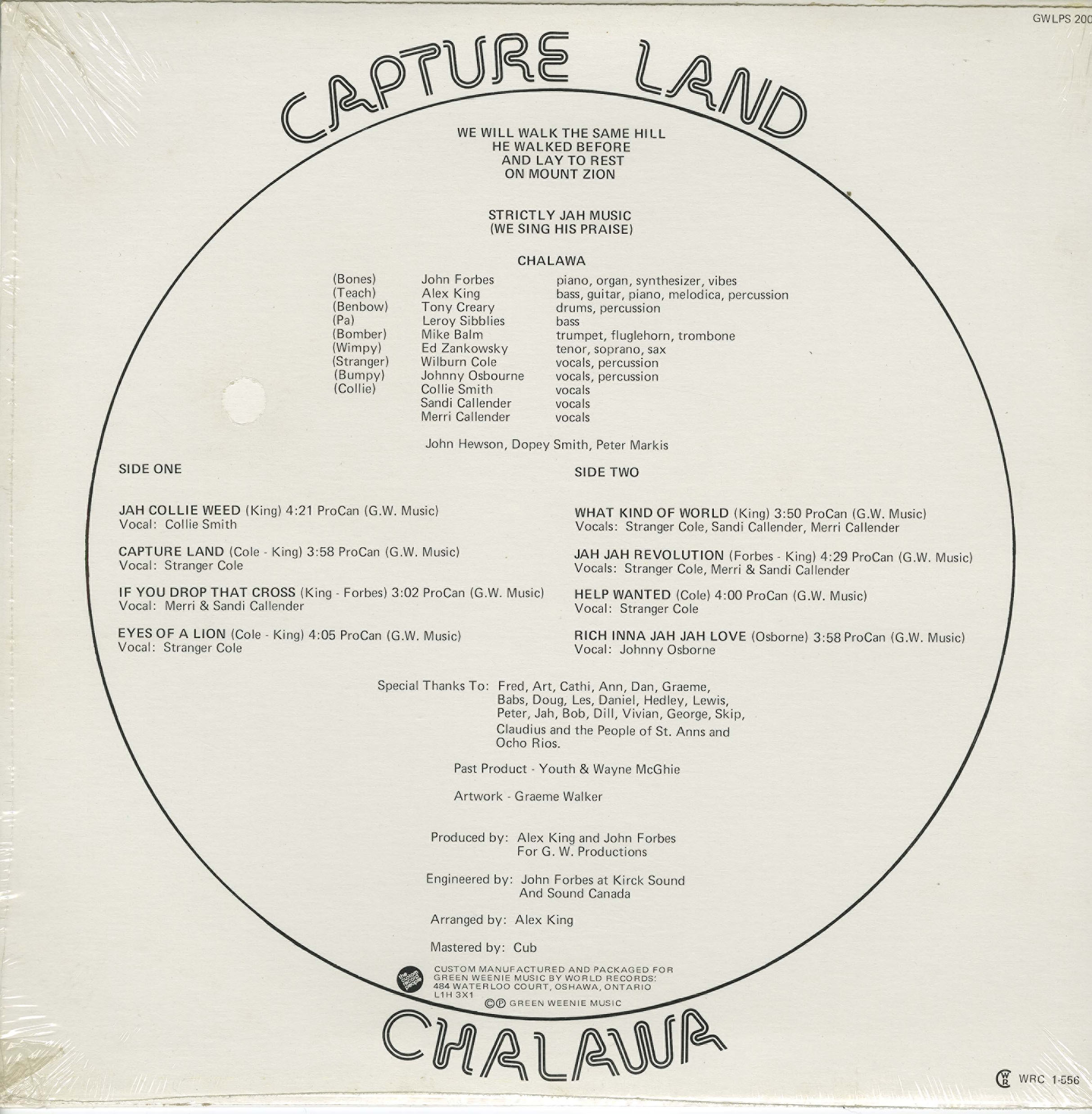 Engineered by John Forbes at Kirck Sound and Sound Canada