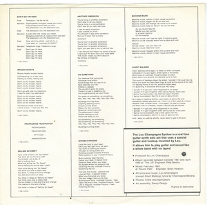 liner notes: The Lou Champagne System is a real time guitar synth solo act that uses a special guitar and hook up invented by Lou. It allows him to play guitar and sound like a whole band with no tapes!
