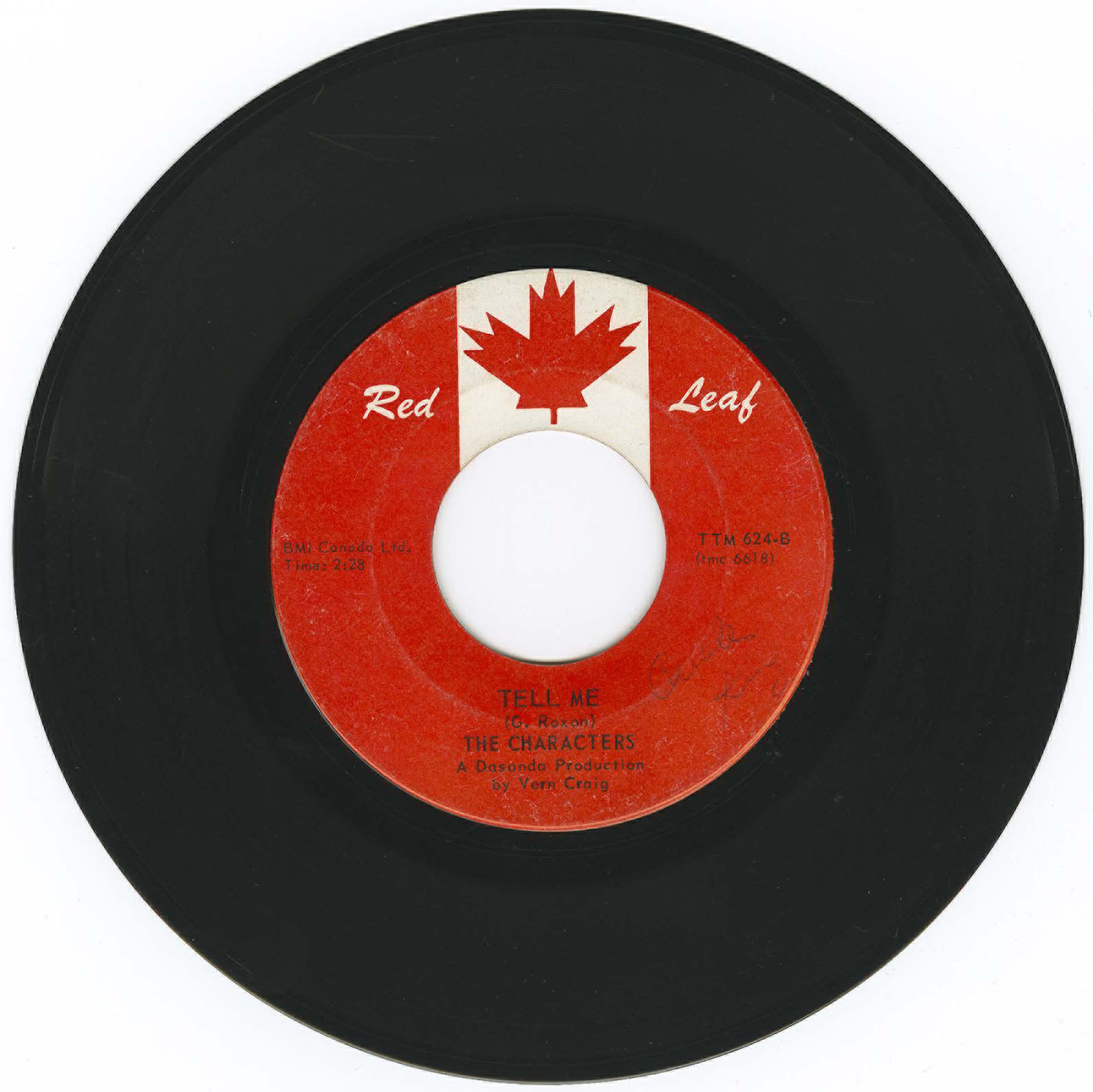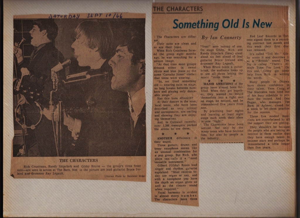 The Characters first single featured 'Tell Me', a fast paced, exciting number reflecting the mersey-beat era and was written in just 5 minutes by Gilbert M Rozon. The track was laid down in 3 takes and it became the Character's signature hit song for 1966.