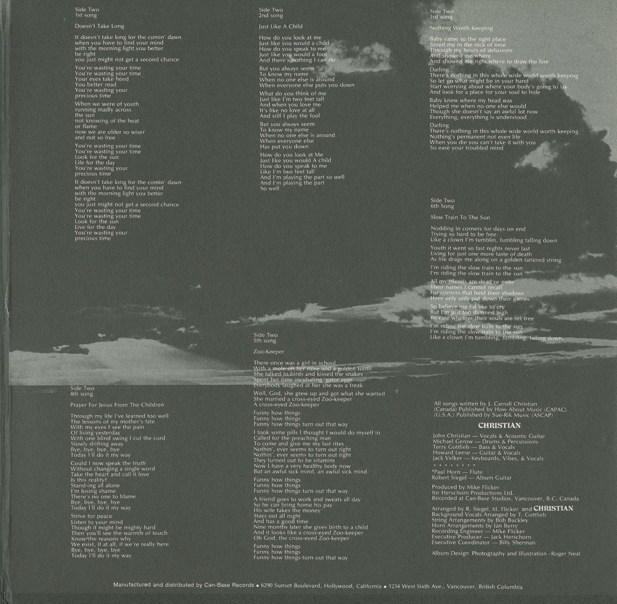 John Christian: vocals, acoustic guitar