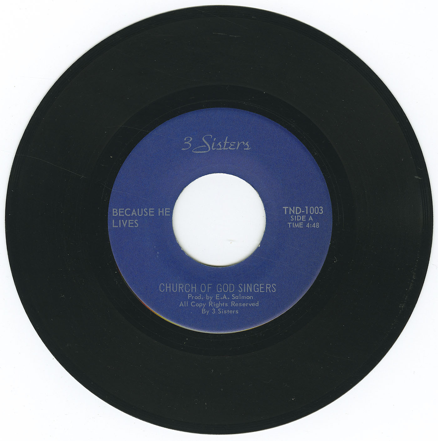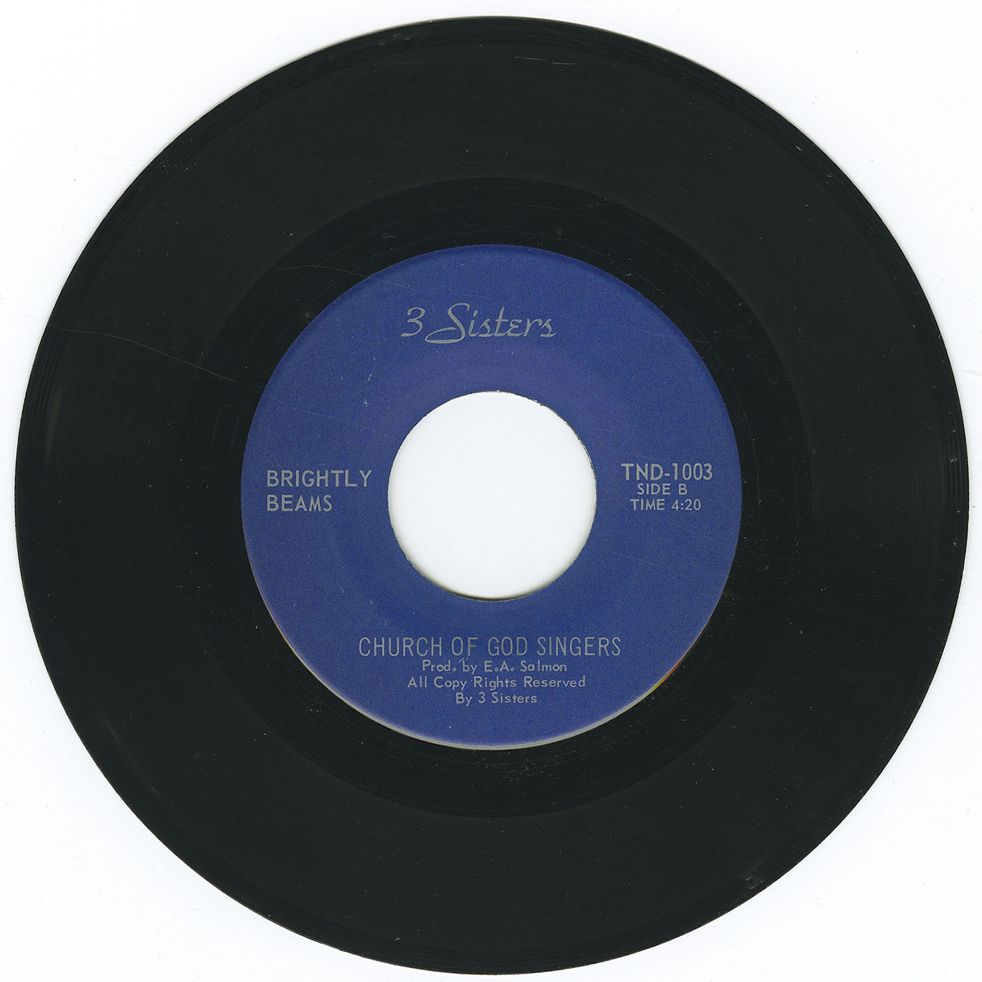 45-Church Of God Singers - Because He Lives bw Brightly Beams VINYL 02