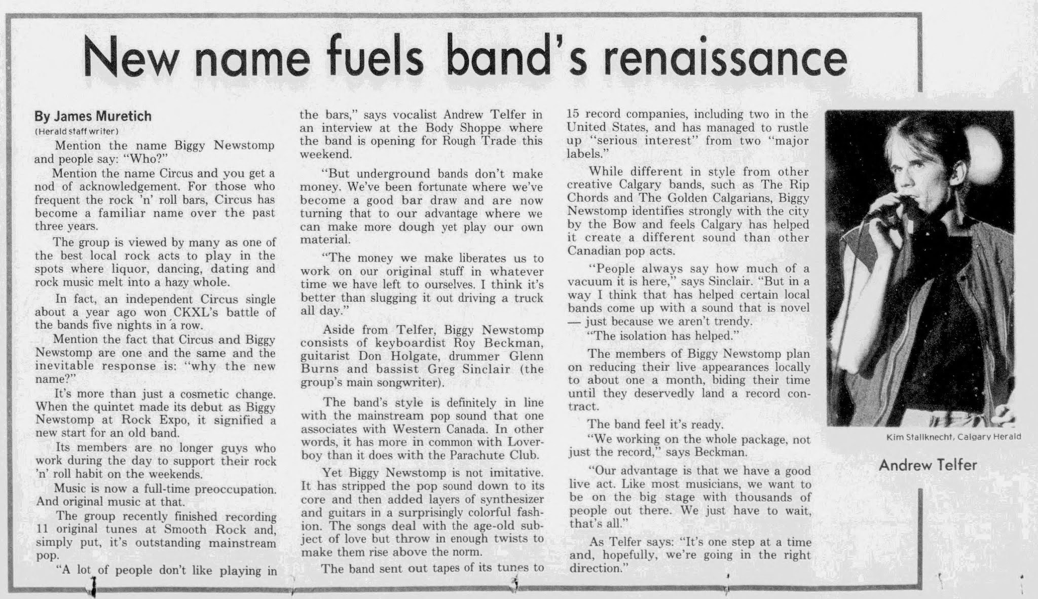 Recorded at Livingroom Studios, Calgary, Alberta, June 1983