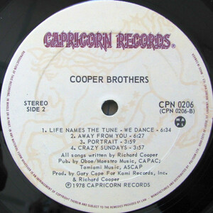 Richard and Brian Cooper, sons of an Ontario songwriter, played in various bands throughout the late '60s, but the two finally formed a group of their own in 1971. They released three singles by 1974, but none charted until the band signed with Polydor the same year and released "Finally with You." Over this time, guitarist Darryl Alguire, drummer Glenn Bell, vocalist/guitarist Terry King, vocalist Charles Robertson and keyboard player Al Serwa joined the brothers. After joining Capricorn Records in the U.S., the Cooper Brothers released the popular singles "Rock and Roll Cowboys," "The Dream Never Dies," "Show Some Emotion" and "I'll Know Her When I See Her." Their albums include a self-titled work from 1978 and Pitfalls of the Ballroom in 1979. Capricorn folded by 1980 and though the Cooper Brothers split up soon after, Brian Cooper and Terry King resumed work in the trio Cooper, King and Emmerson.