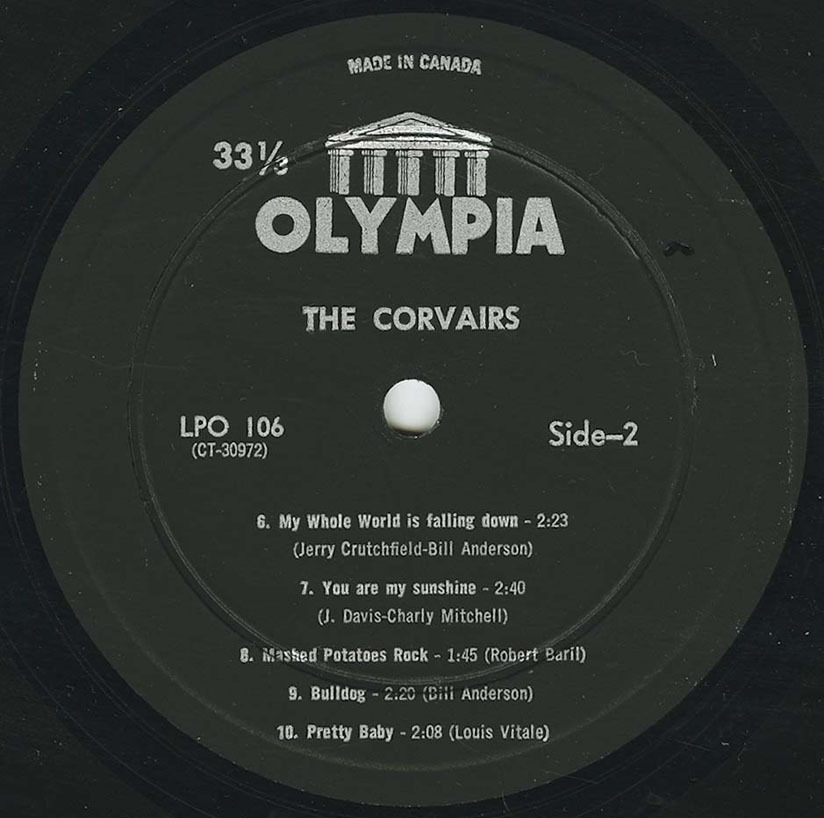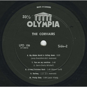 Le groupe se séparait subitement après avoir gravé ses deux albums pour Olympia. Il se reformerait en 1967, échangeant au passage Picotin pour un nouveau soloiste (Gerry Dusseault) jusqu'à leur dissolution en 1978. Tout de même! Pour sortir du lot, le groupe aurait du opter pour un pseudonyme avec plus de coffre. Entre vous et moi, j'aime bien la Corvair 1959, mais ce n'est pas une Pontiac Bonneville Coupe si vous voyez ce que je veux dire. Mashed Potatoes Time témoigne toutefois à sa manière du son des soirées de la Casa Loma ou du Domino, des cabarets montréalais populaires tout au long des années 60. Enregistré à la va-vite et publié discrètement au pinacle du rock instrumental, l'album demeure en rotation constante chez votre auteur depuis peu. À rechercher les plus pertinents moments de notre modernité sonore, j'ai récemment eu un coup de coeur en compagnie de mes compairs de Misérablement Vôtre (abonnez-vous!) pour les débuts du rock n' roll Québécois. Je proposerai ainsi bientôt un survol d'autres albums beat pré-1965, notamment ceux des Melody Makers (1963; Plaza PL-3301) et de Léo Benoit (1960; Guitare GTL-1923).