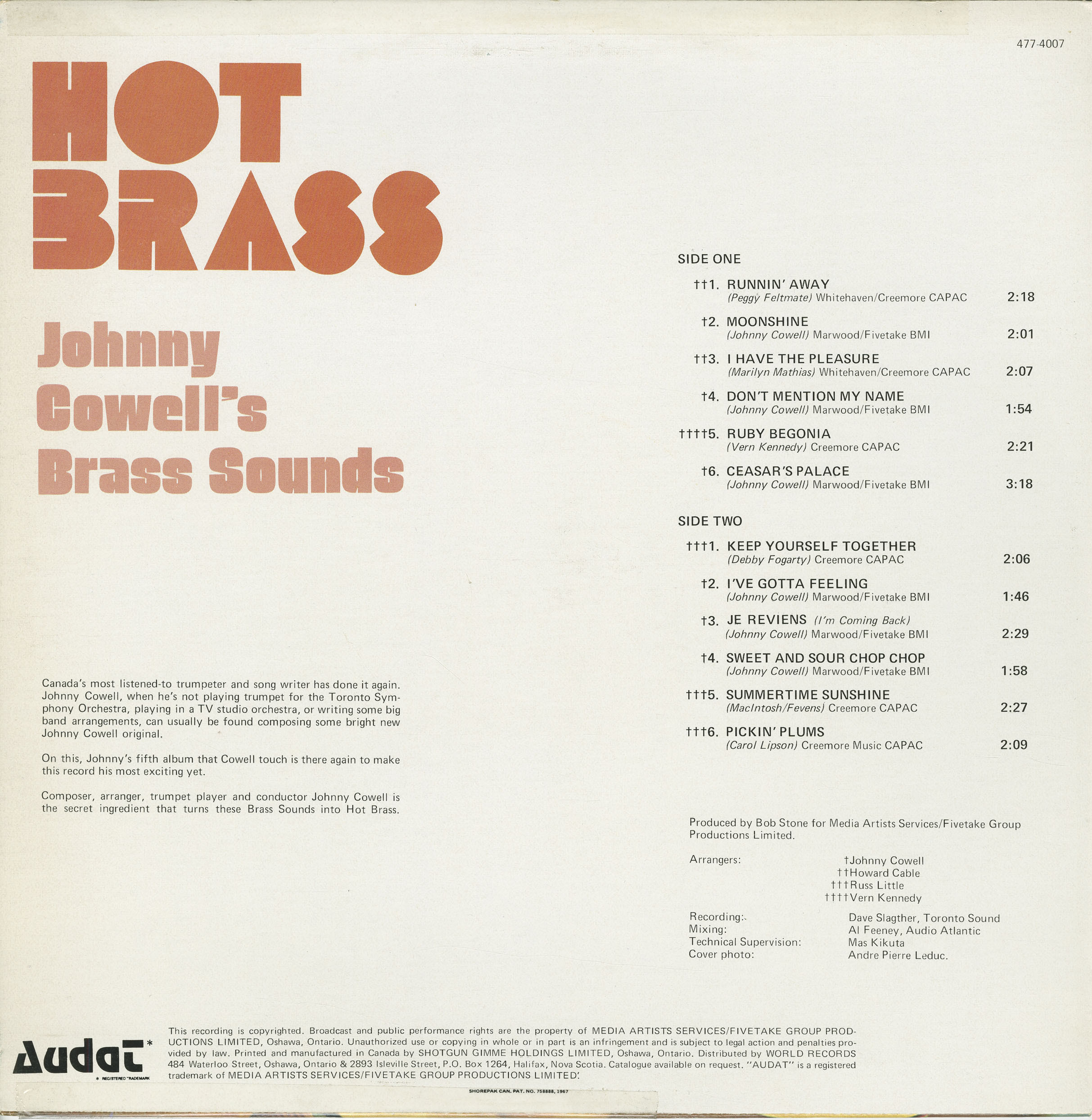 Composer, arranger, trumpet player and conductor Johnny Cowell is the secret ingredient that turns these Brass Sounds into Hot Brass.