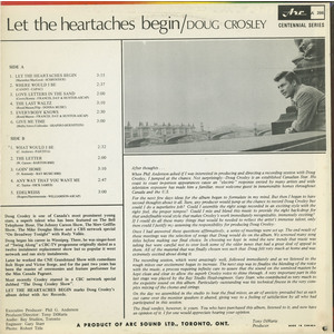 One of the first ideas that came to this album began to formulate in my mind. But then I began to have second thoughts. I asked myself if our problem was how to find the chance to record Doug Crosley but rather how to find the right songs and the right musical support. It occurred to me that the best music for Doug should be in the middle tempo with lyrics to provide the right back-drop for that rich baritone style. Songs which work immediately recognizable, immensely exciting? No—not exactly. What we needed were selections which reflected the artist's innermost feeling, and the craftsmanship and good taste that is Doug Crosley.