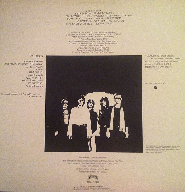 Formed in Montreal, Québec, in 1979 Cruiser was a supergroup of Canadian club veterans including ex-April Wine drummer Richie Henman. Afer an independent 7” called “On the Firing Line” in 1979, the band managed to gain some critical mass after releasing their debut album on Guy Rheaume’s Network Records called ‘Rollin’ With the Times’ and even received major label interest. Shortly after starting work on their follow-up album the band fell apart and split up, officially, in 1983. The second album, ‘Strange News’, eventually saw the light of day through Disques Reso in 2014; Cruiser also doubled under the pseudonym Ian Cognito, also on Network Records; Stevens would go on to play in Leyden Zar; Henman would later join See Spot Run; the Rathie Brothers formed The Sporting Life and released one album in the 1980s.