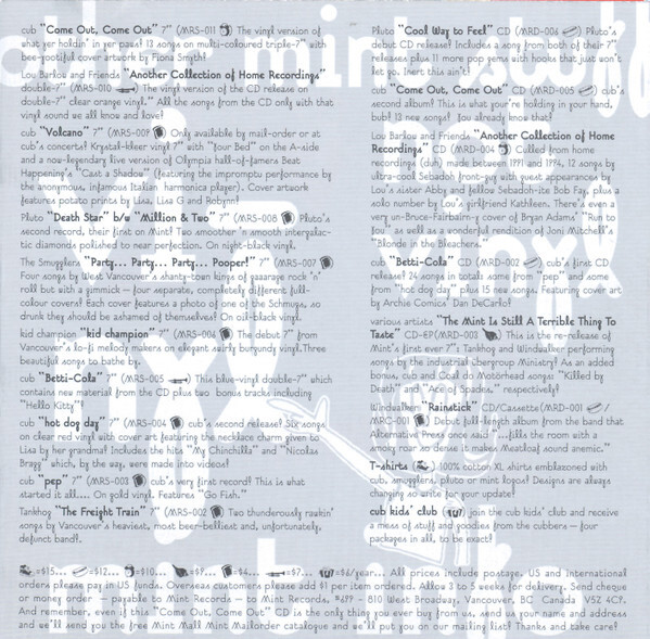 After their 1993 release Betti-Cola ruled the campus airwaves for three consecutive months, cub came out with this quirky gem: Come Out Come Out. The purveyors of cuddlecore lit the fire with Betti-Cola, but this one burned the house down and solidified cub and Mint Records in indie record land.