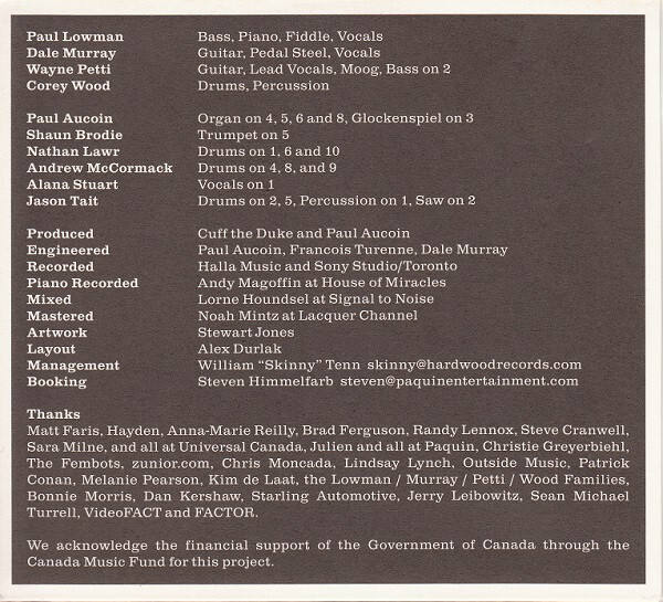 Dale Murray: guitar, pedal steel, vocals, engineer