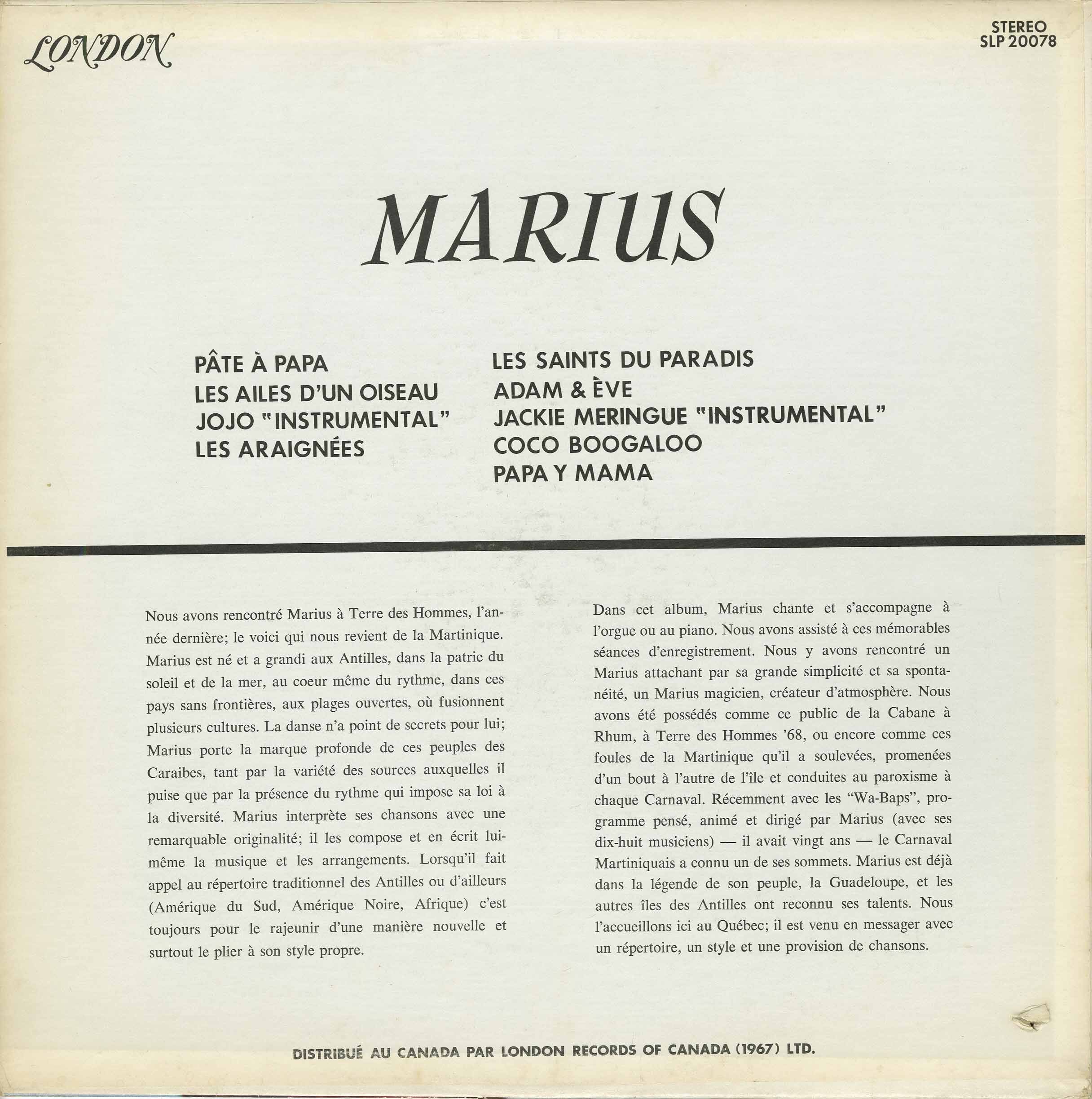 Marius Cultier - De La Martinique - back side