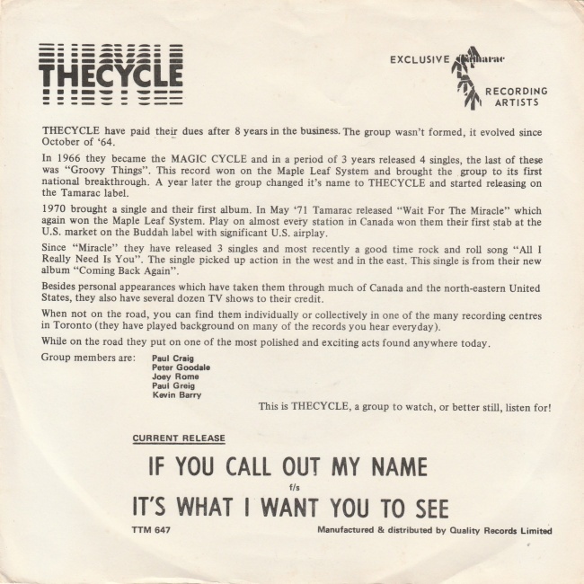 Cycle (Magic Cycle) - If You Call Out My Name b/w It's What I Want You to See