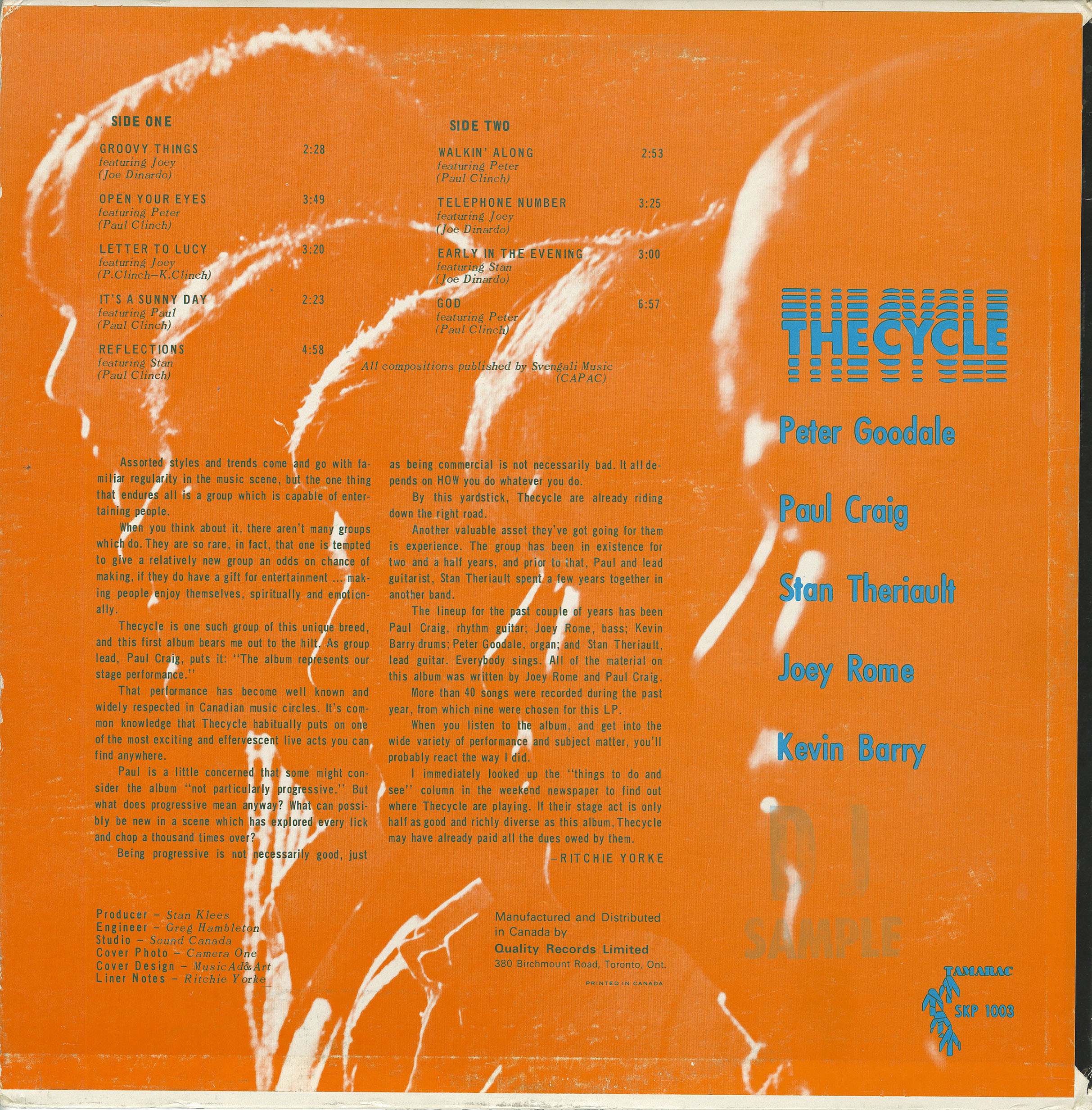By the summer of 1969 The Magic Cycle issued their most enduring late-sixties side, “Groovy Things” backed with “It’s a Sunny Day,” through Stan Klees’ Fingerprint imprint via GRT. Initially a regional sleeper around southern Ontario, it became the calling card for a band ready to tighten its name to The Cycle and lean harder into the studio. Around this time the group evolved into a first-call recording unit for producer Greg Hambleton at Sound Canada—cutting uncredited sides for budget LPs, demoing catalog songs, and quietly powering sessions that seeded later projects, including Steel River’s “Ten Pound Note” pipeline and the earliest Gary & Dave recordings.