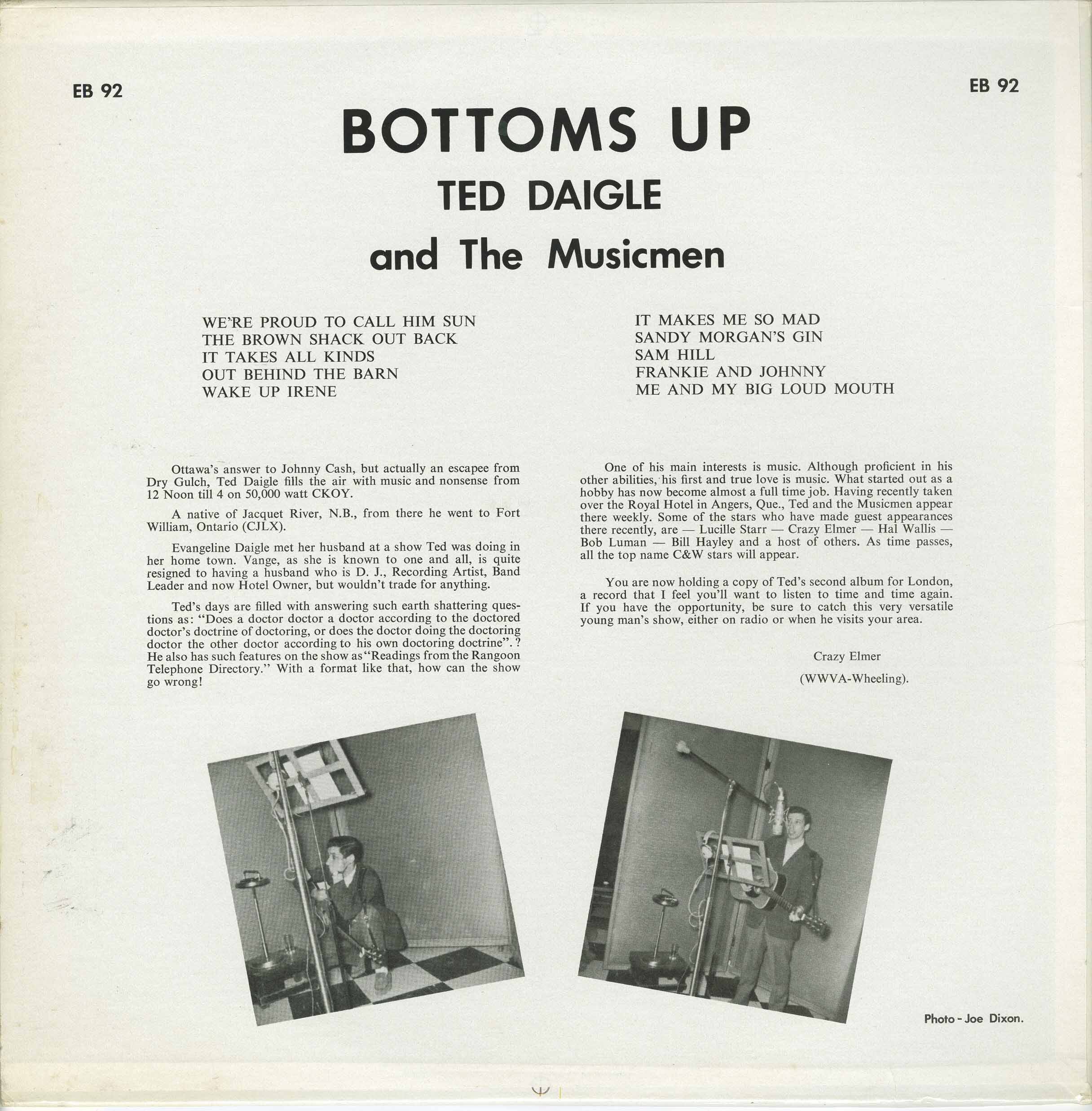 Released in 1971 on London Records, Bottoms Up finds Ted Daigle fully embracing his country and honky-tonk influences, while still retaining the rockabilly spirit that defined his earlier work. By this time, Daigle had become a well-established radio personality and recording artist, and this album reflects his seasoned confidence as both a performer and bandleader.