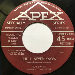Written by Davies-Goldner-Munro-Kalet (Never Anymore b/w She'll Never Know); and Davies, Goldner, Munro (She'll Never Know)