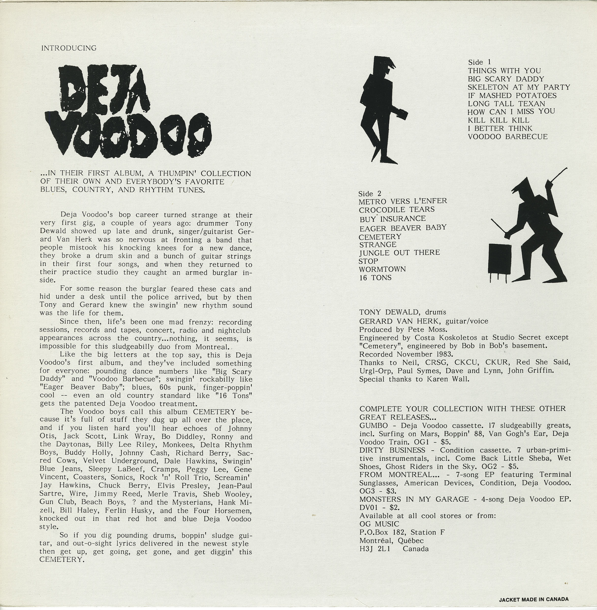 Engineered by Costa Koskoletos at Studio Secret, except B5, engineered by Bob in Bob’s Basement. Recorded November 1983