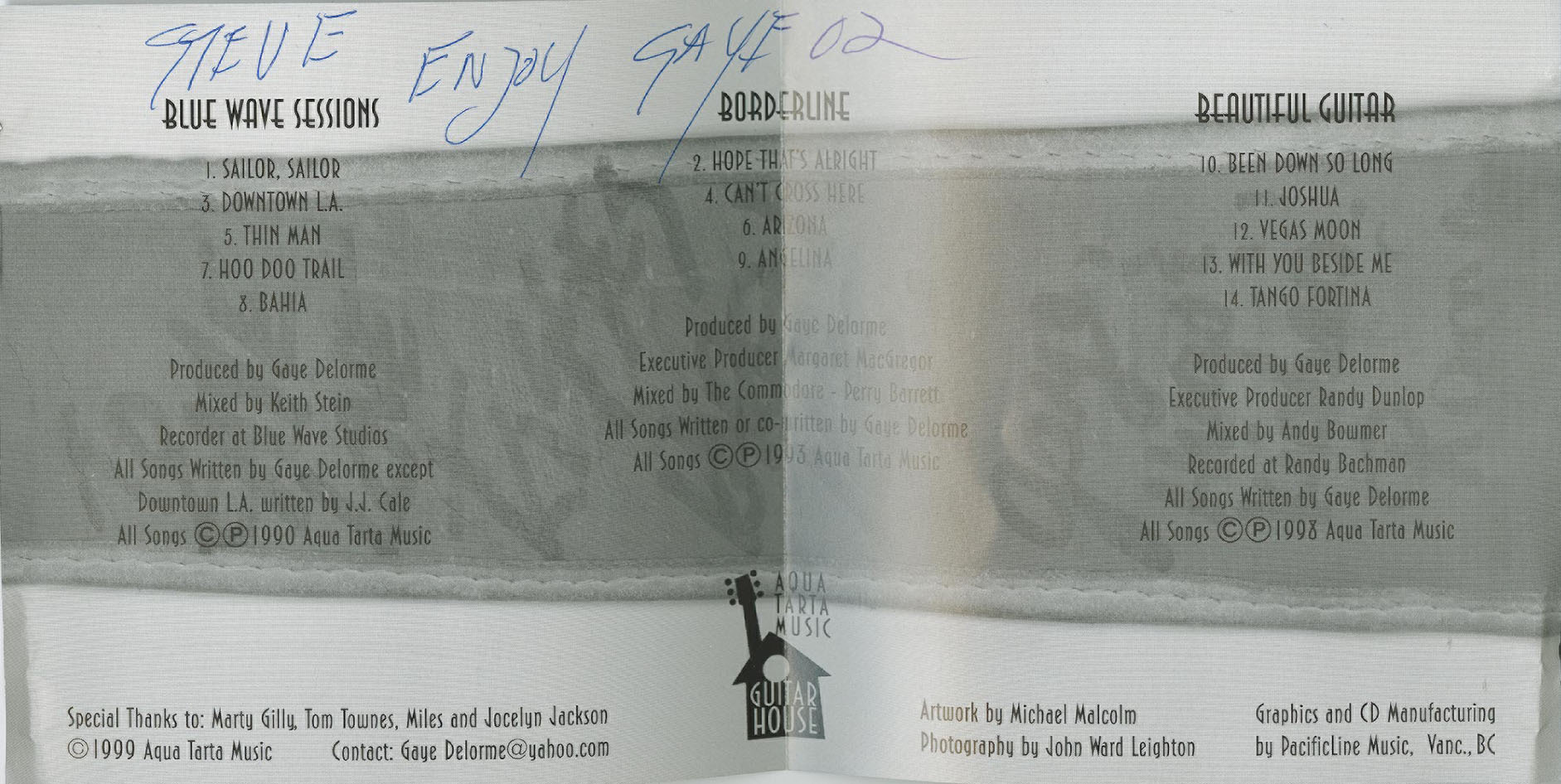 After a brief move to Vancouver, Delorme returned to Edmonton in the 1990s, and was a mainstay at the Sidetrack Cafe, where he developed a Latin fusion style that at one point featured Gaye leading a 10-piece band with a horn section. (Also in the 1990s, he first learned how to read music.) From roughly 2000 to 2009, Gaye lived in Vancouver, and focused on his writing, recordings and concerts, often appearing solo. All of Delorme's recordings were released on his own label, Aqua Tarta Music. He also performed as a studio musician for a variety of recording artists. In 2009, Gaye moved back to Edmonton.
