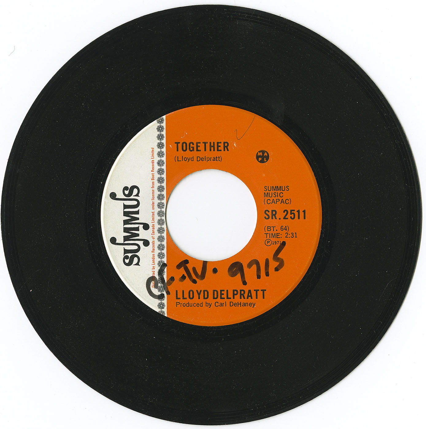 Recorded 1971 by Carl DeHaney at Eastern Sound, Toronto, Ontario