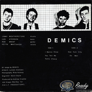 Manchester, England's Keith Whittaker named his London, Ontario, Canada's band Demics after a Manchester slang insult meaning "wanker". The band started playing in the small clubs of London after meeting in the downtown loft scene. They released an EP called "Talk's Cheap" which garnered some airplay on cutting edge Toronto radio station CFNY-FM with this version of "New York City". They played the Toronto club circuit and opened for The Dead Boys and Johnny Thunders and the Heartbreakers. The band split up in 1979 but reformed with new guitarist Steve Koch in early 1980. They recorded a self-titled album with a new version of "New York City" produced by English guitarist/producer Chris Spedding who later covered the song himself over 10 years later. They called it quits again in 1981. In 1996 Chart Magazine, a Canadian college and alternative radio publication, voted "New York City" the best Canadian single of all time.