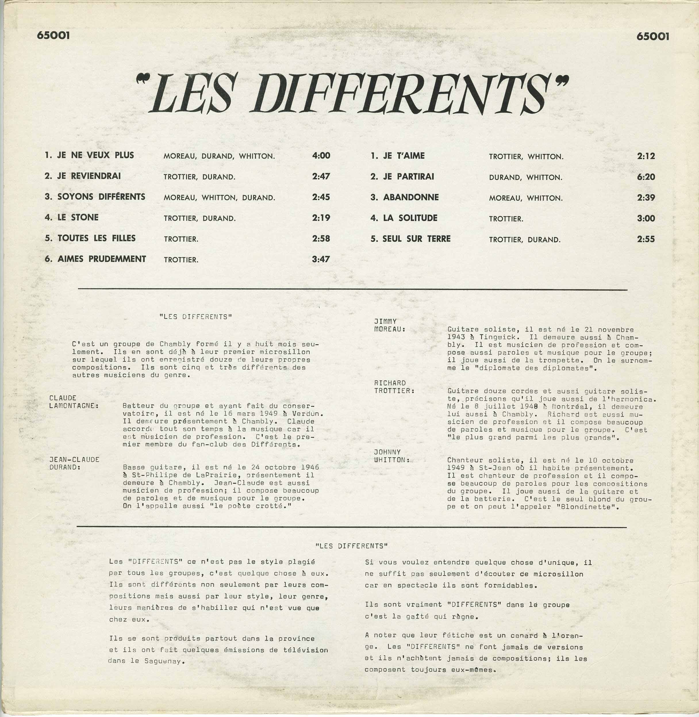 The Les Différents LP is now a treasured piece of Quebec garage history, featuring standout tracks like: