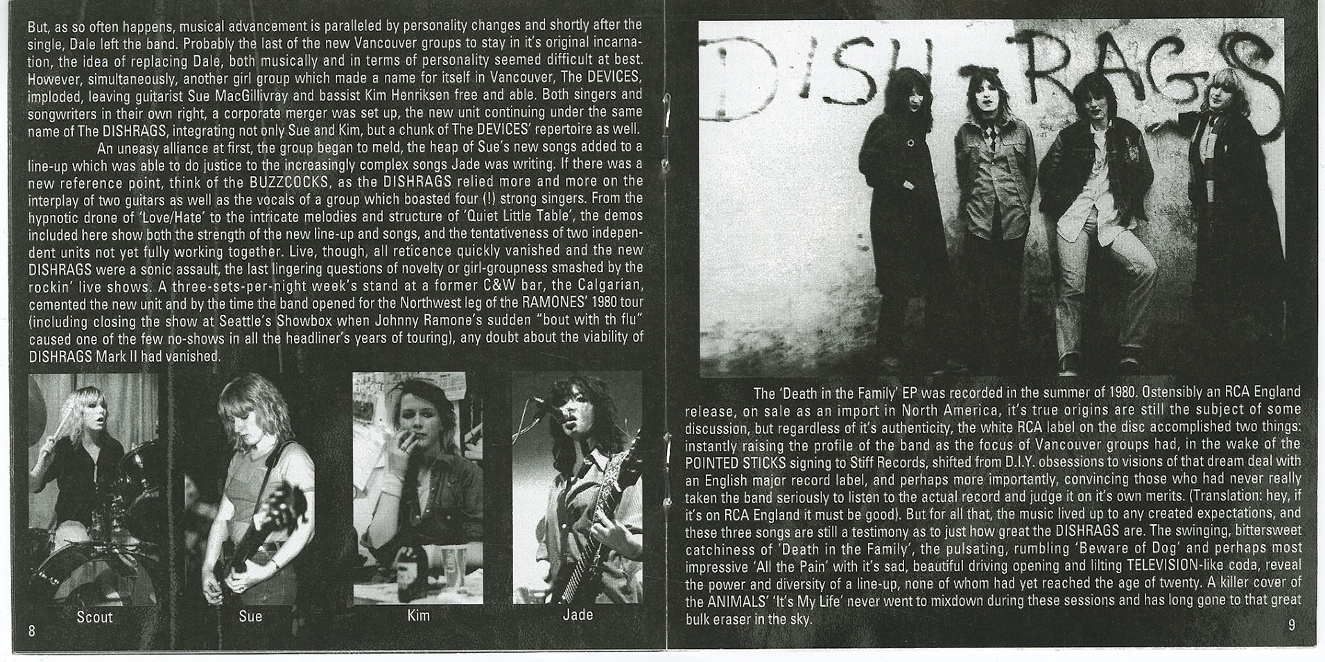 Still in their mid-teens when they began playing out, the Dishrags were quickly swept into Vancouver’s growing punk subculture. After missing the Ramones’ 1977 Vancouver debut due to underage restrictions, the Dishrags made their own local debut supporting The Furies — a slot they likely secured through familial connection, as Jade Blade was cousin to the Furies’ guitarist. At that first show, Dee Dee and the Dishrags (as they were briefly known) cranked out a set of Lou Reed, Clash, and Ramones covers, bolstered by a few rough originals. Despite the band’s youth and inexperience, their passion and authenticity were evident — and from that point on, they never stopped performing. From warehouse gigs to battle-of-the-bands slots, they gradually developed a reputation for tight, high-energy sets and sharp songwriting.