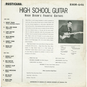 Montreal Instro Guitar King & Race Car Champ! Dixon had previously been in The Lincolns, who recorded one surprisingly hot LP of Elvis Presley's early Rockabilly in 1962. In 1963 he played his last live gigs with NDG's own wild pre-teen rockin' trio The Melody Makers. He backed up Bob Davies on his Rusticana LP's and from 1963-65, worked extensively as a studio session man, appearing on hundreds of local records. At the time this album was released, Dixon was far better known as the reigning Québec Region Racing Champion. This LP features a few drag cuts: Dead End, Wild Mouse & Road Rat! "Big Blast" was comped on Early Canadian Rockers, Vol. 5. He was also a DJ and a champion of races motor (Austin-Healey Sprite or Jaguar D-Type).