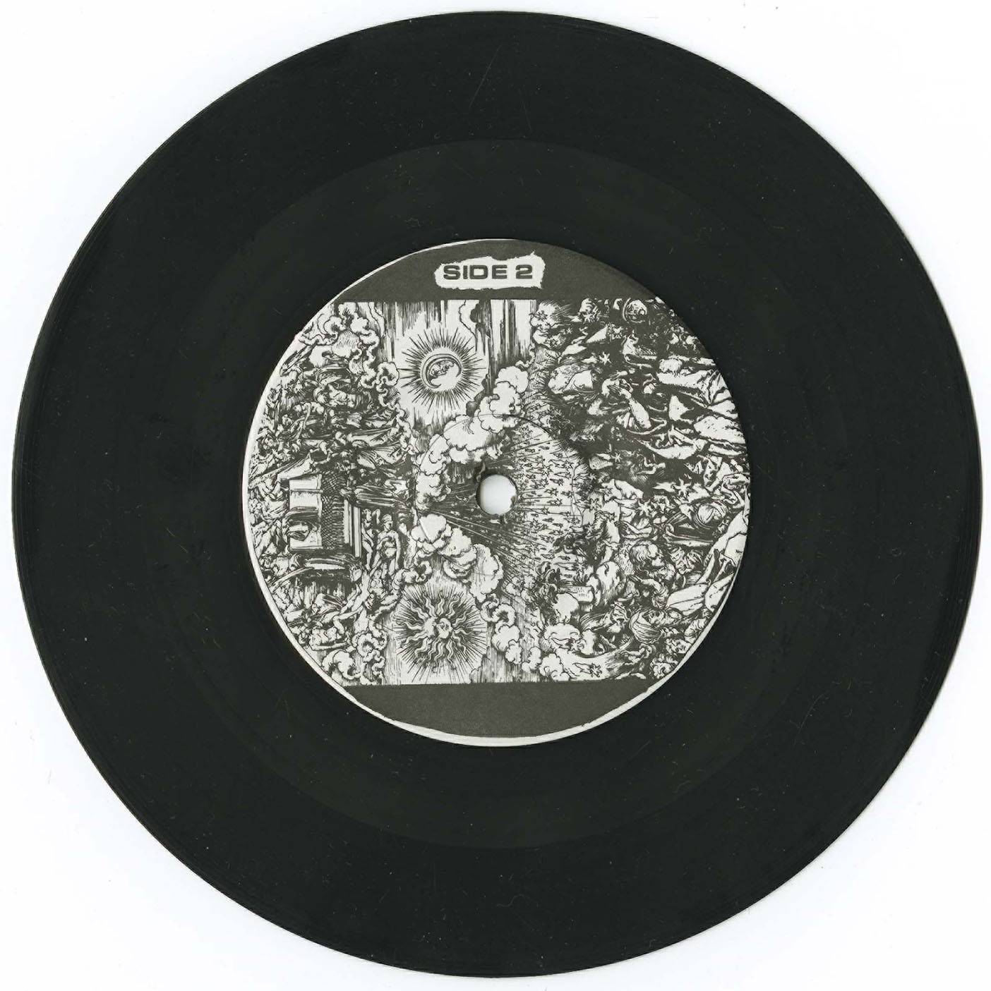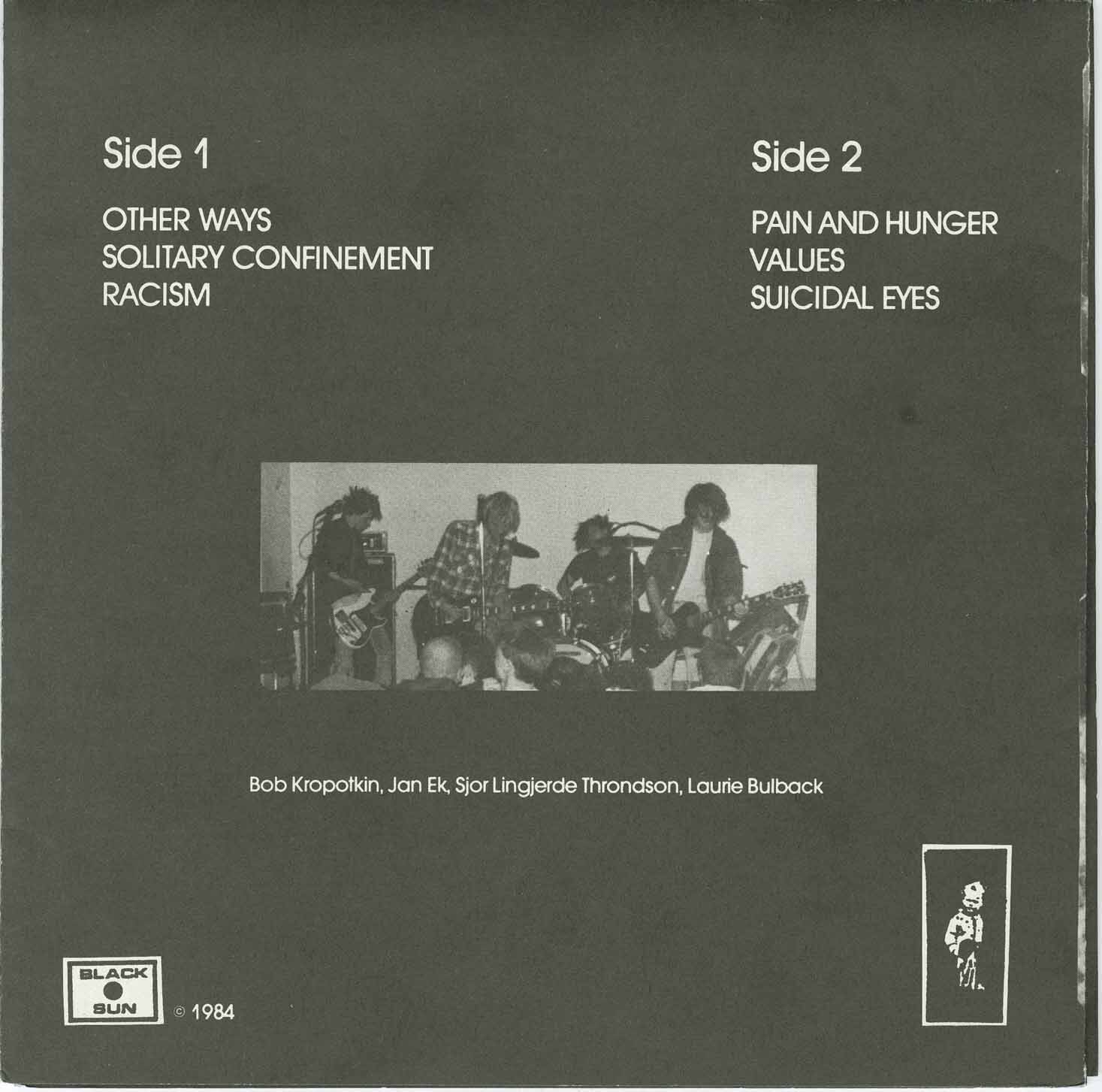 This, along with lyrics, itemized pressing info and costs for the record, and a peaceful/insightful anecdote by each band member is printed on the inner sleeve of this Edmonton-based hardcore punk band’s only vinyl output. Although Canadian, DOWN SYNDROME fits right in with the sound of many Euro hardcore bands of the era, combining melody, punchy drums, and anarcho-inspired lyrics. The mid-tempo tracks on this EP are great, but the faster songs really showcase the band’s power.