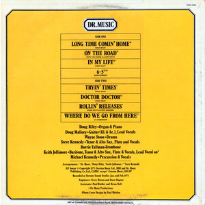Arranged by: Doug Riley ('Long Time Comin' Home', 'In My Life', 'Tryin' Times', 'Doctor Doctor'), Keith Jollimore ('On The Road'), Steve Kennedy ('6-5', 'Rollin' Releases'), Dr. Music ('Rollin' Releases', 'Where Do We Go From Here')