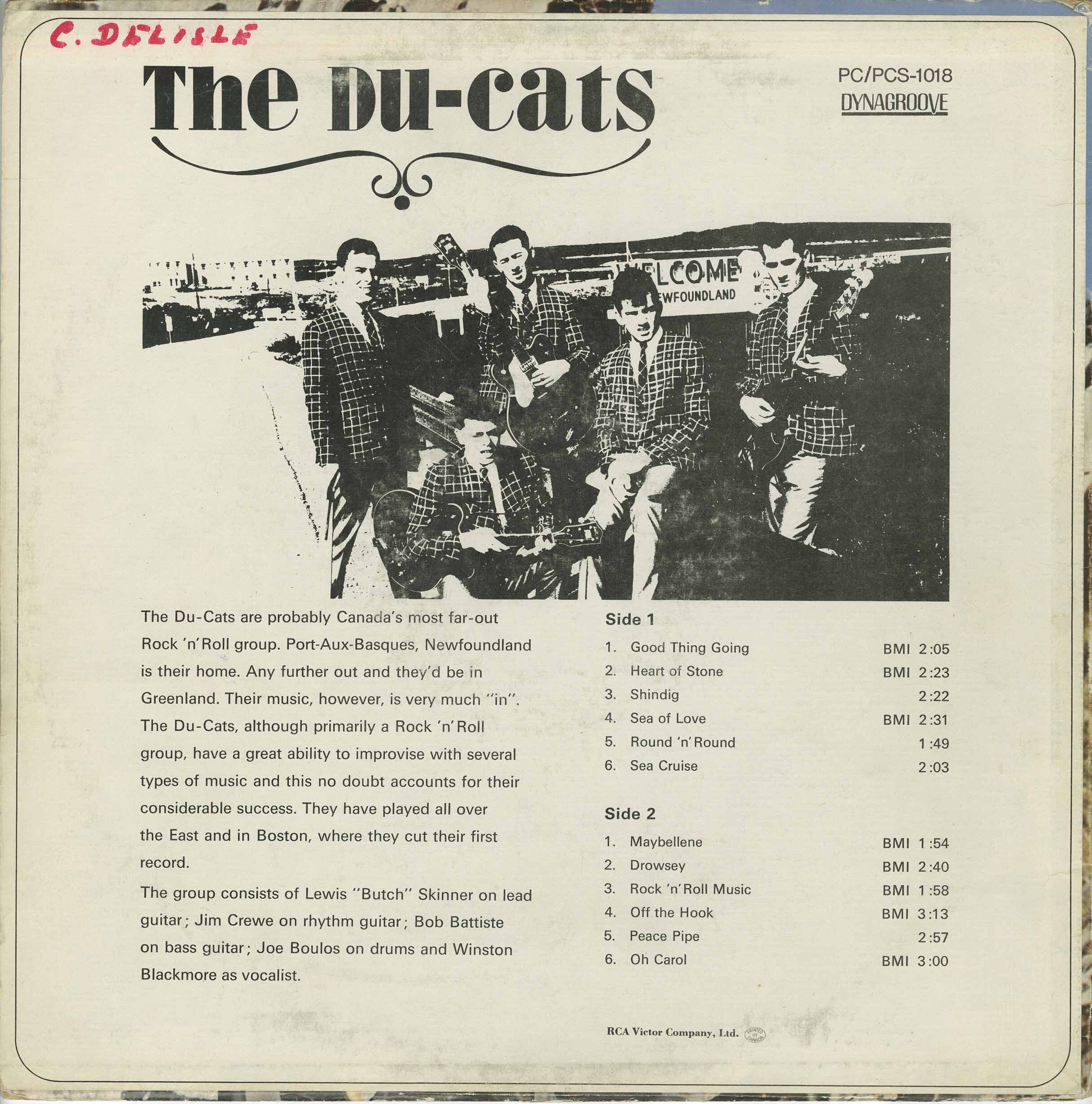 In 1965, The Du-Cats recorded the second (first were The Keatniks) rock and roll album by a Newfoundlander. Nicknamed "The Tartan Album" (the band members wore the Newfoundland Tartan blazers), the album had two different pressings, with two different covers. The first pressing was a mono pressing on RCA PC-1018. It had ""Hey Woman" and "Stay Awhile", are included in this album" written on the back (although the album did not have these tracks on it). The second pressing was stereo and was released on RCA PCS 1018. Although they both shared the same photo, the second pressing was zoomed in a bit further. It is not known how many of these were pressed, probably 500 of each. A Near Mint copy sells for $300-400.