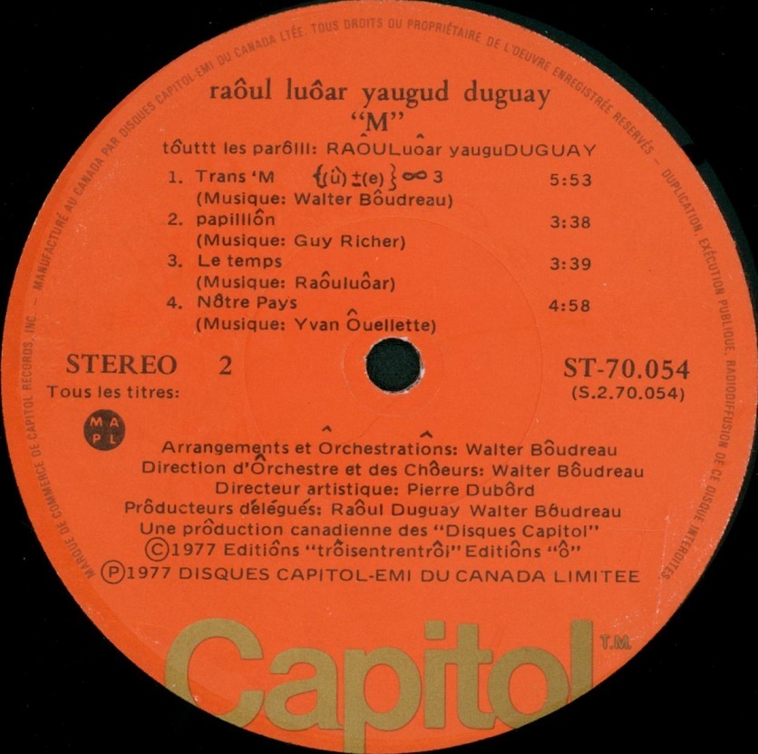 Lyrics by Raôul Duguay