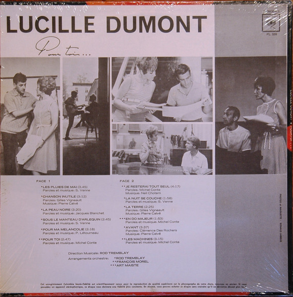 Throughout the 1960s and early 1970s, Dumont continued to host and appear on major television programs, including Entre vous et moi, Histoire d’une étoile, Le temps d’aimer, and a self-titled series, while welcoming major French artists such as Charles Aznavour, Jacques Brel, Gilbert Bécaud, and Charles Trenet to Quebec audiences. During this period, her recorded work expanded to long-playing albums, including her 1963 Adagio LP devoted to songs by Jacques Blanchet, Pierre Calvé, and Michel Conte, and her 1965 Columbia album Pour toi, reflecting the evolving studio production and orchestration of Québec chanson in the mid-1960s, and her continued role as a bridge between traditional chanson and modern studio presentation.