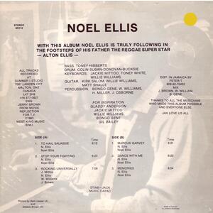 Recognizing Ellis' talent, Brown released Noel's "Reach My Destiny" as one side of a split disco 45 in 1978. The song didn't generate much interest, but 1979's "Rocking Universally," recorded at Summer with help from Jackie Mittoo, did, even charting in Europe as a 12" single. Four years later, in 1983, Summer released a full-length album by Ellis, simply called Noel Ellis, which featured "Rocking Universally" and five other solid roots reggae tracks in extended versions. The album didn't achieve any commercial success at the time, but has since become somewhat of a lost cult classic. Ellis left Summer and began working a series of odd jobs to support himself, occasionally tracking sides for small independent labels, eventually relocating, like his father, to London. Seattle's Light in the Attic Records rescued the excellent Noel Ellis LP from obscurity in 2006 when the label reissued it on CD.