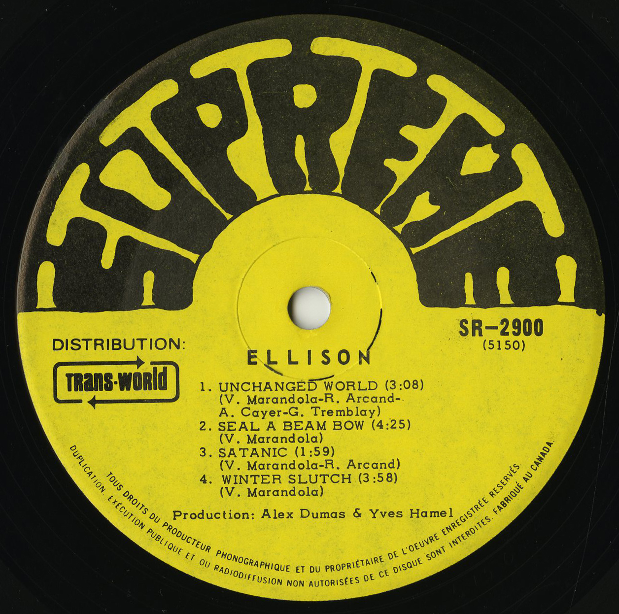 Ellison formed in Montreal in late 1967, when vocalist/guitarist Vincent Marandola and bassist Richard Arcand started the trio Jimmy Peace. By 1969, drummer Robert Cager and guitarist Christian Tremblay joined, and the band was renamed Ellison. They became part of L’Association des Orchestres, a collective supporting Quebec’s underground rock, blues, and hard rock artists.