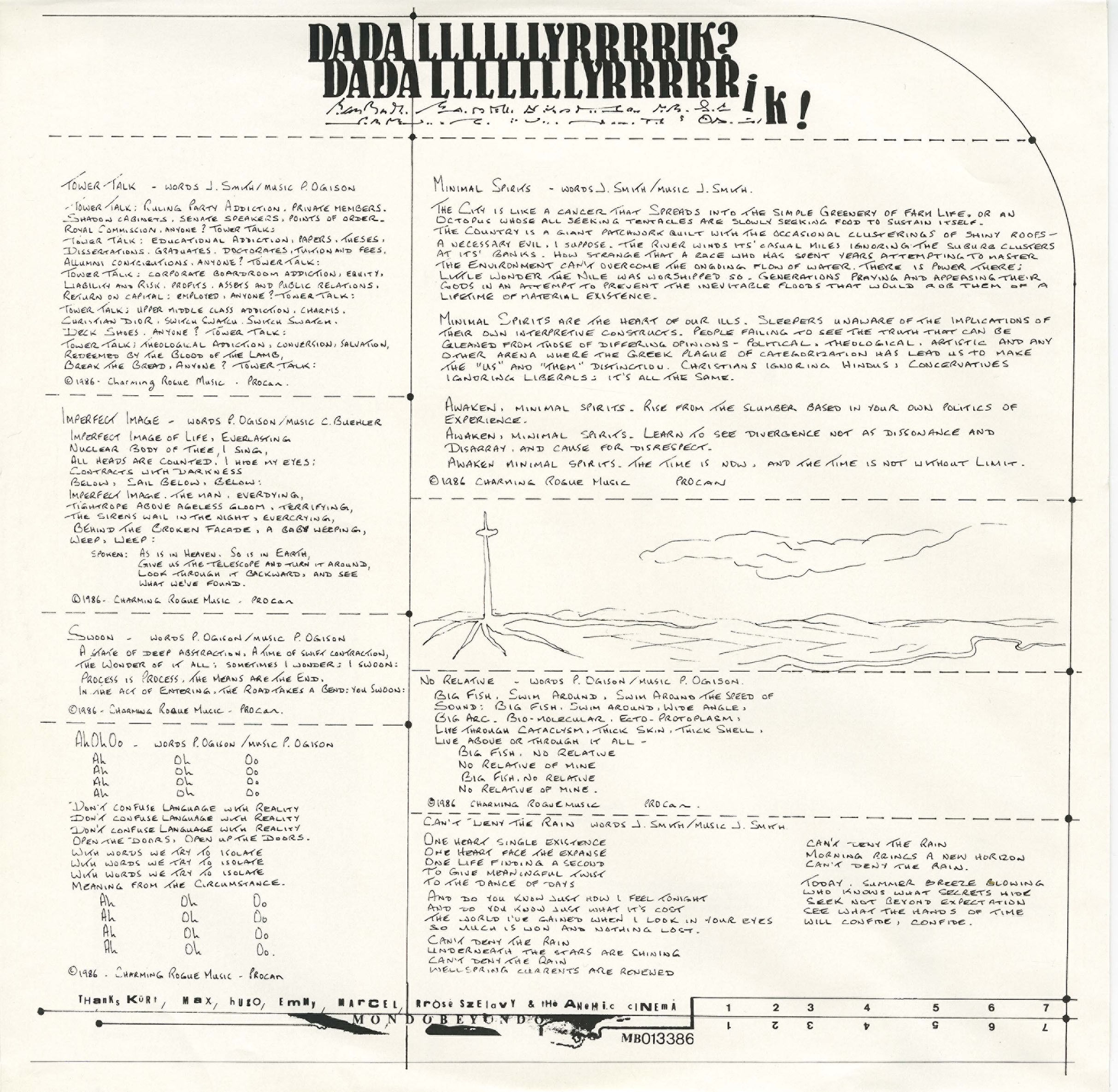Recorded at Soundproofs, Toronto, Ontario, Canada, June, 1986