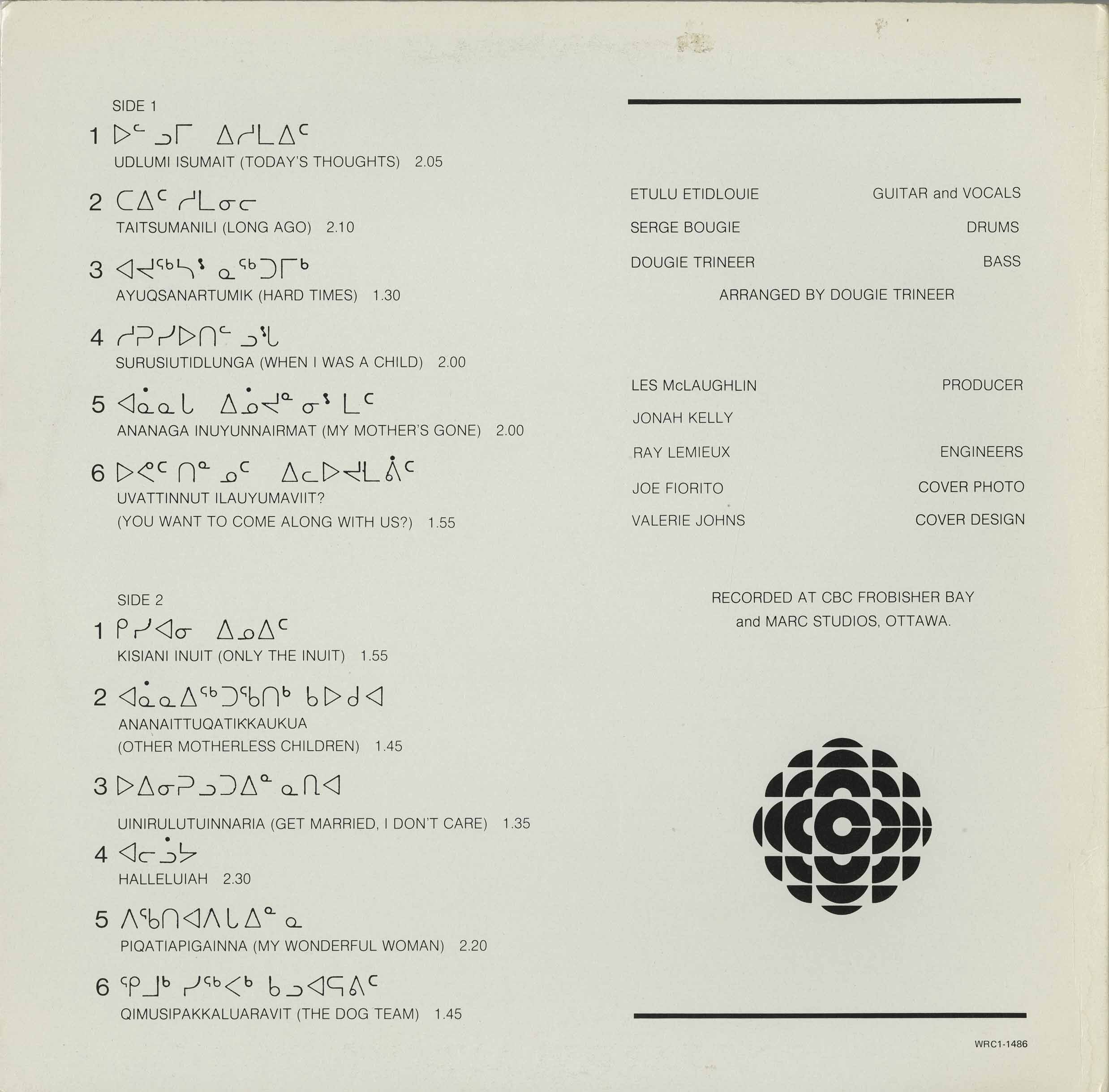 recorded at CBC Frobisher Bay and Marc Studios, Ottawa