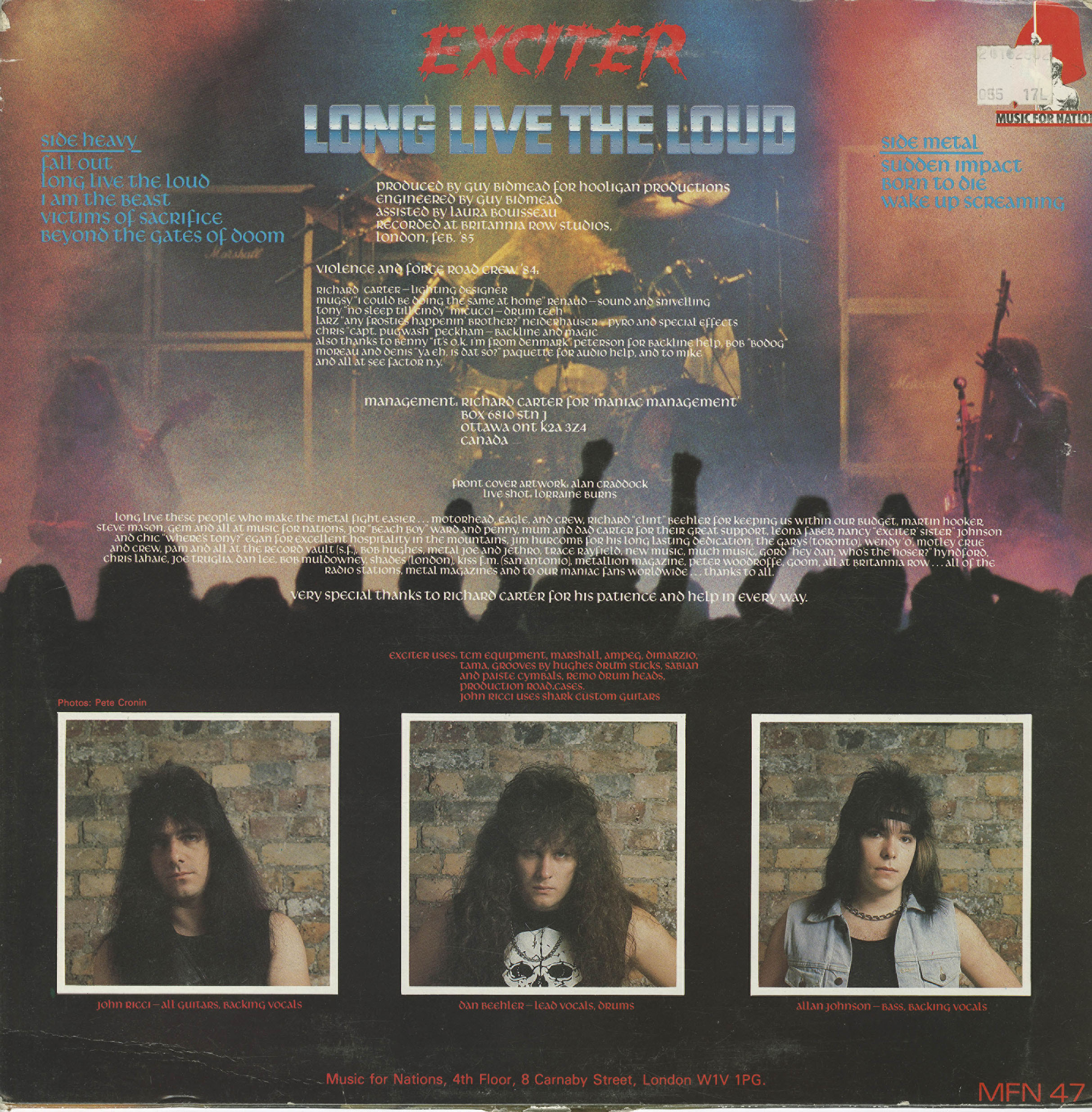 Exciter ranks with the likes of Anvil and Razor in the pantheon of metal from the Great White North, helping to define Canadian thrash metal or what was more commonly called "speed" metal back in the ‘80s. Their first three albums, Heavy Metal Manic, Violence and Force and Long Live the Loud are classics that should be viewed in the same light as releases like Executioner’s Song and Metal on Metal.